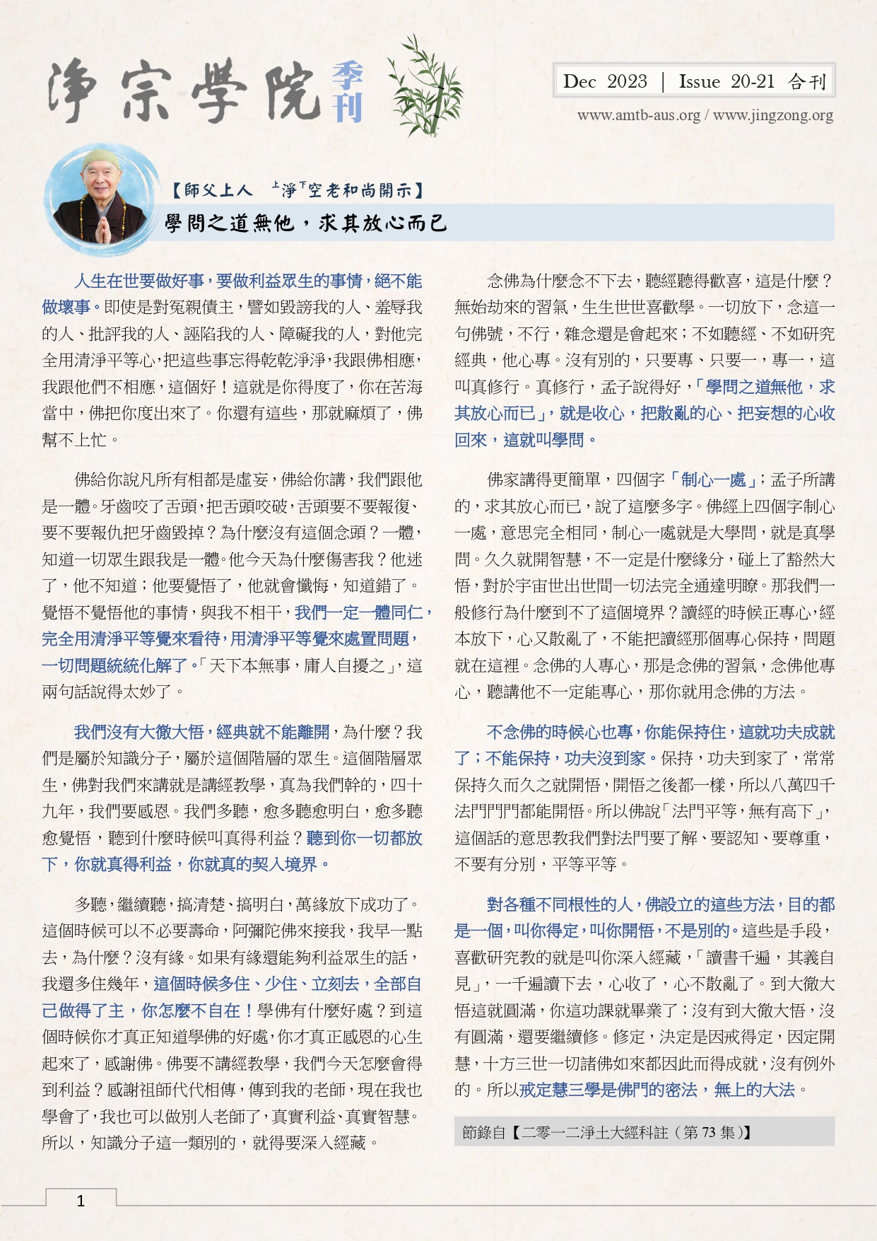 【淨宗學院季刊】 2020年06、09、12月合刊