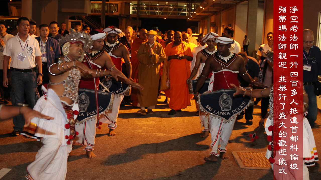 淨空老法師一行四百多人抵達首都科倫坡 強帝瑪法師親迎 並舉行了盛大的歡迎儀式