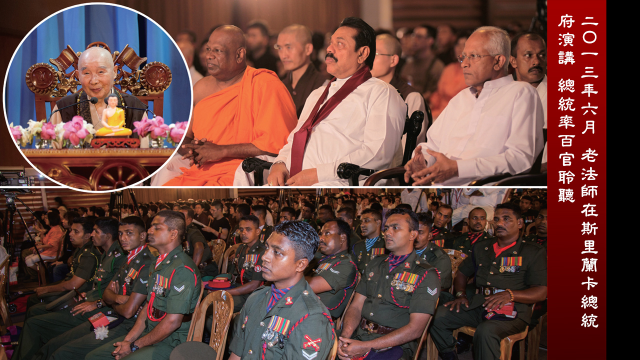 二O一三年六月 老法師在 斯里蘭卡總統府演講 總統率百官聆聽