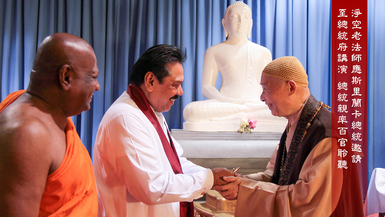 淨空老法師應斯里蘭卡總統邀請 至總統府演講 總統親自率百官聆聽