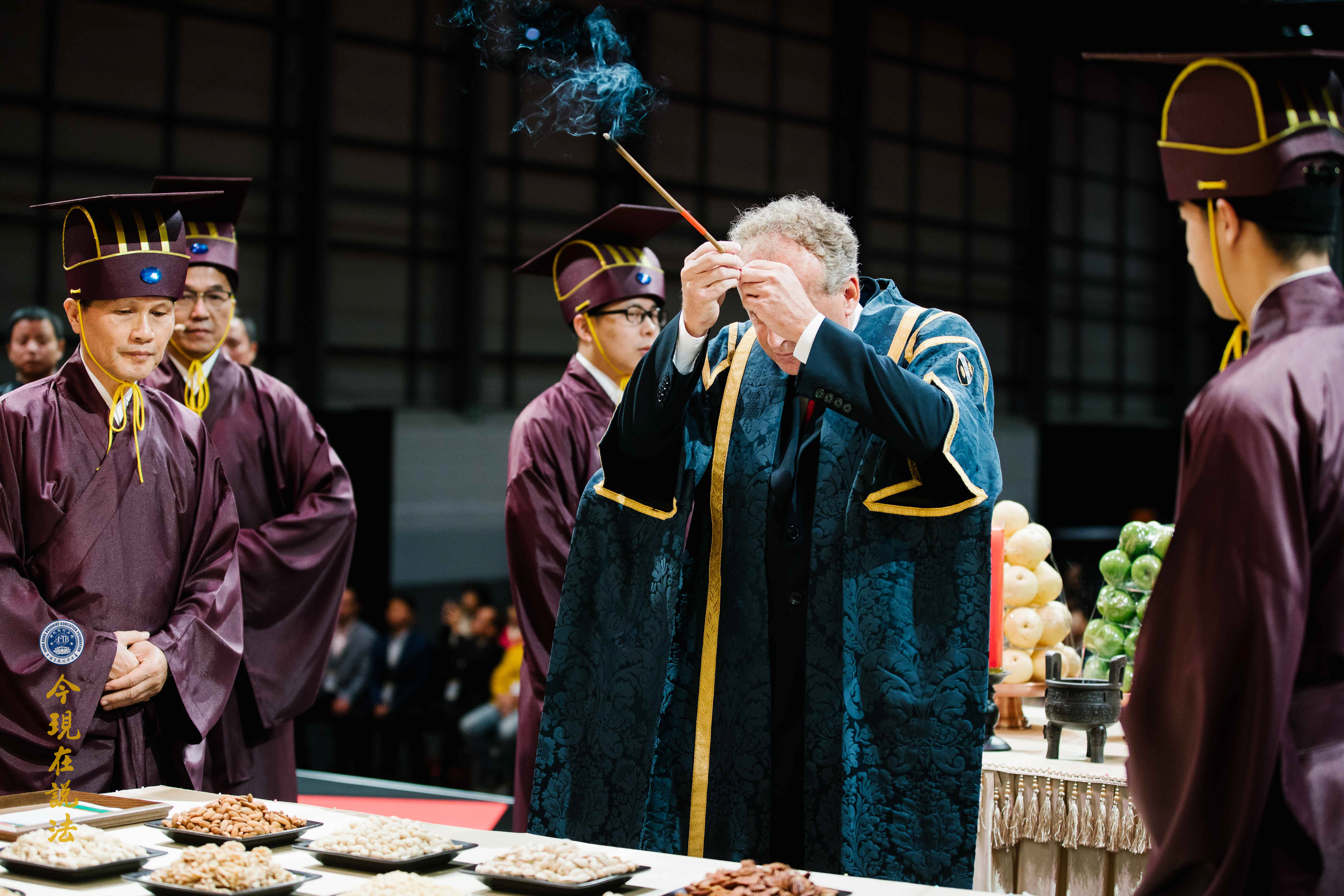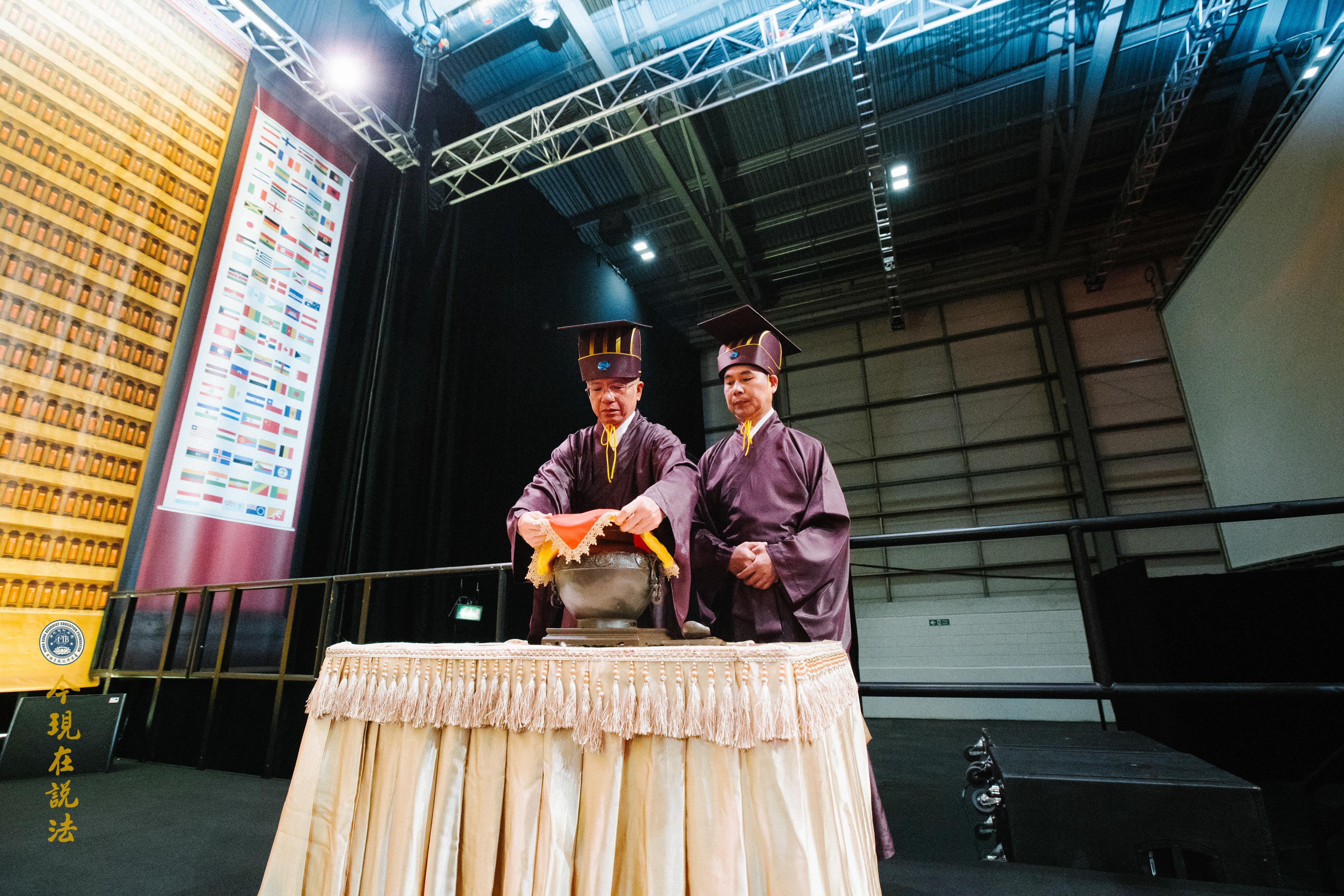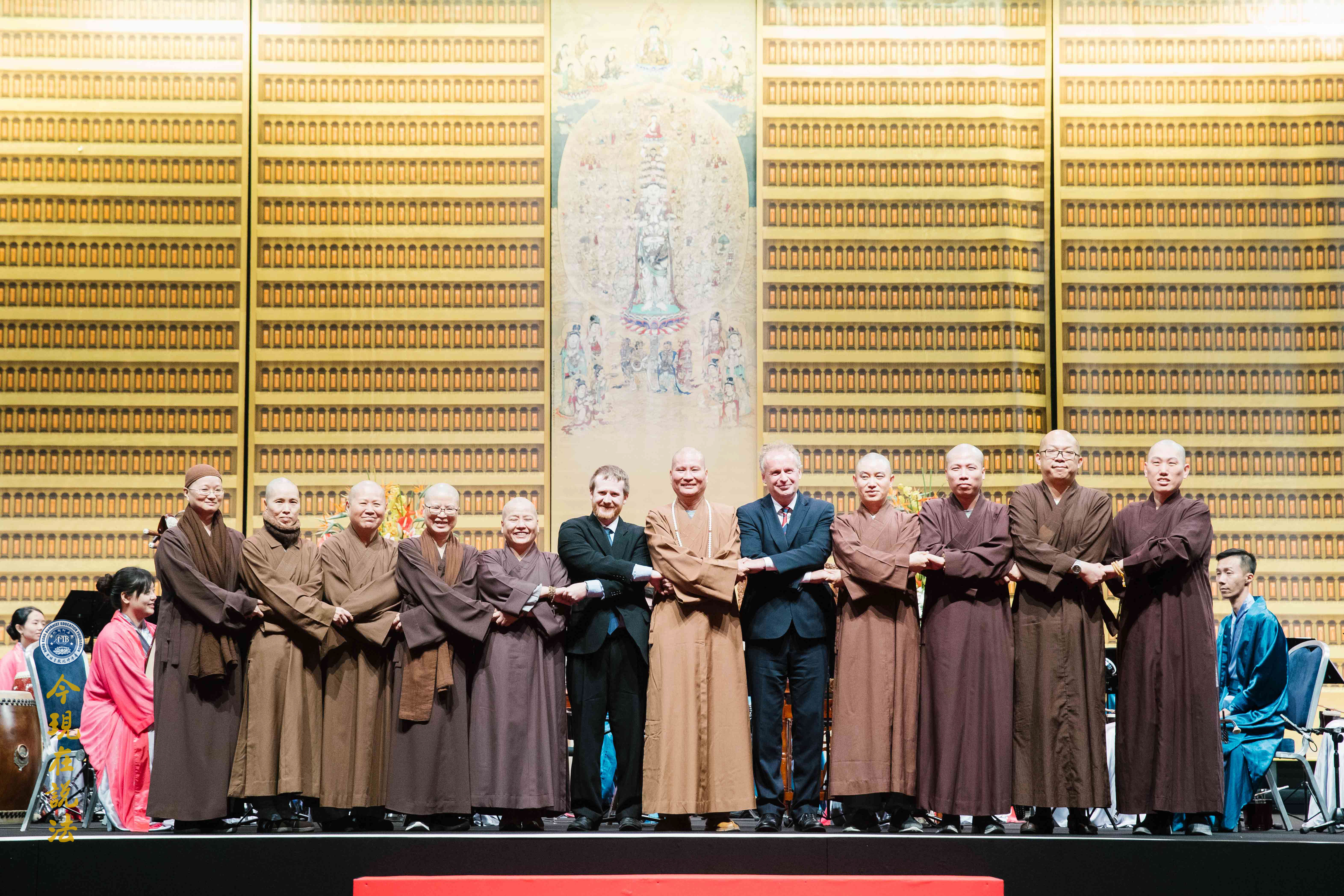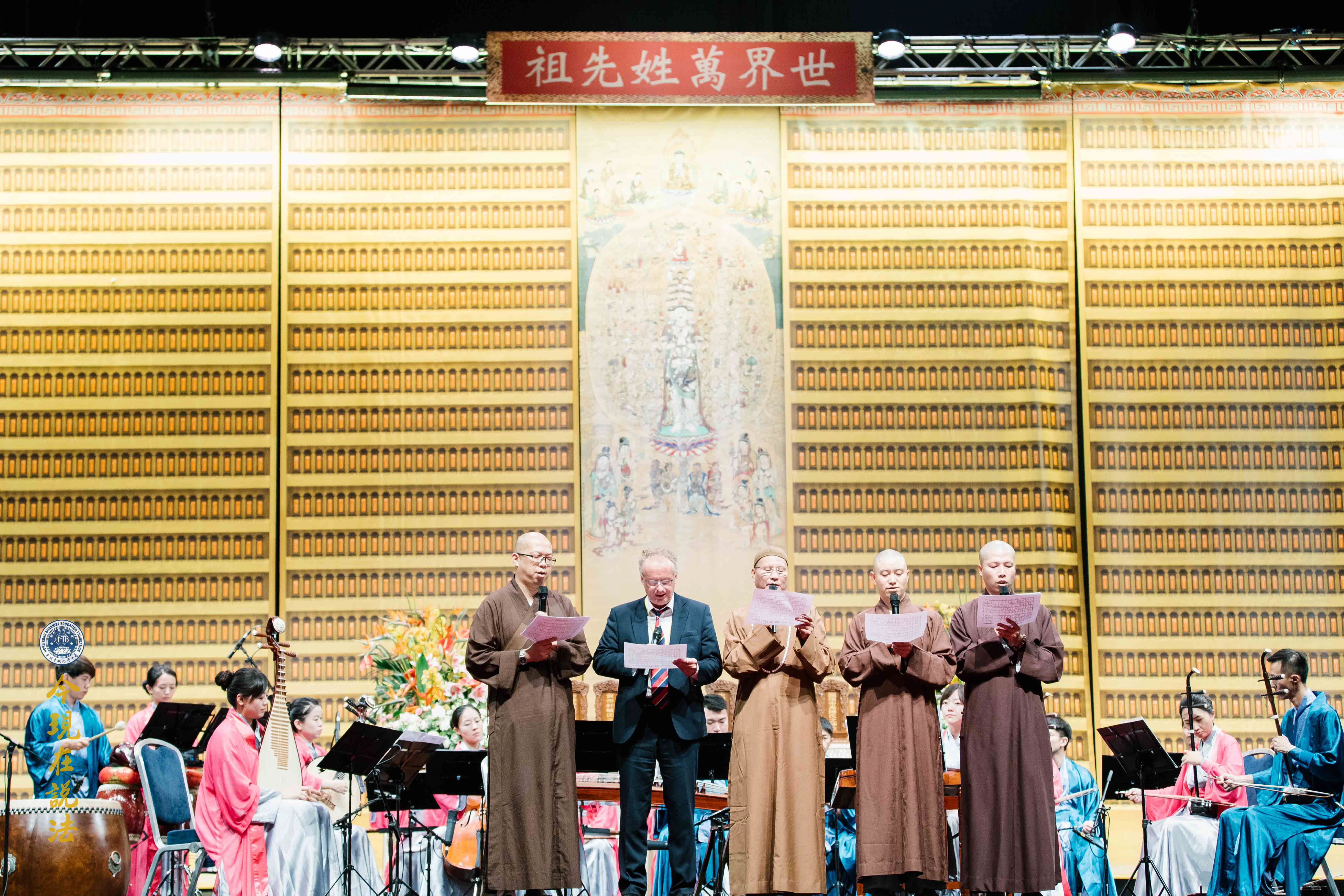 史密斯院長(英方主祭官)與華藏淨宗學會的法師們合唱《吉祥偈》:「願晝吉祥夜吉祥,晝夜六時恆吉祥」,傳達溫暖的祝福