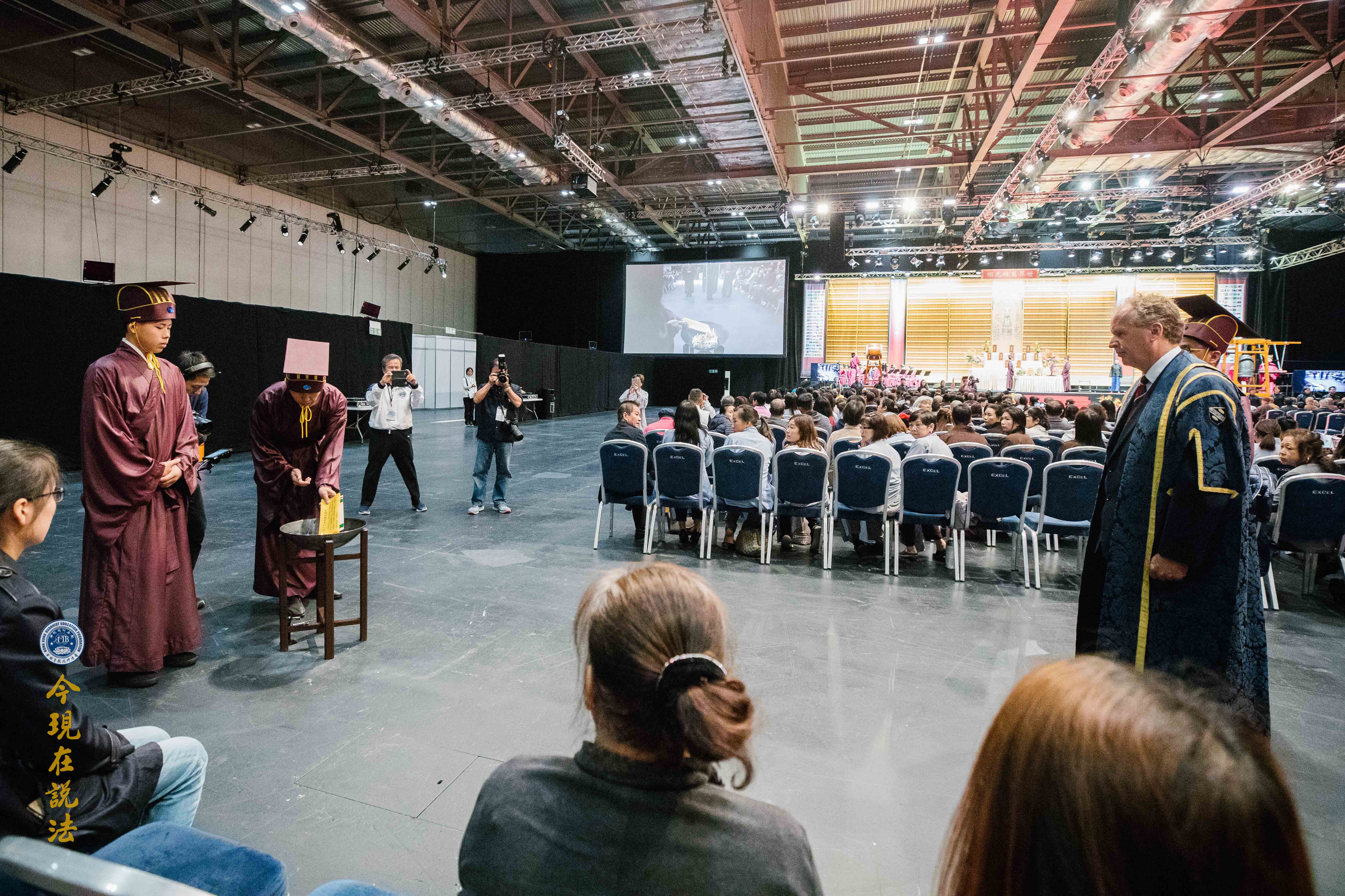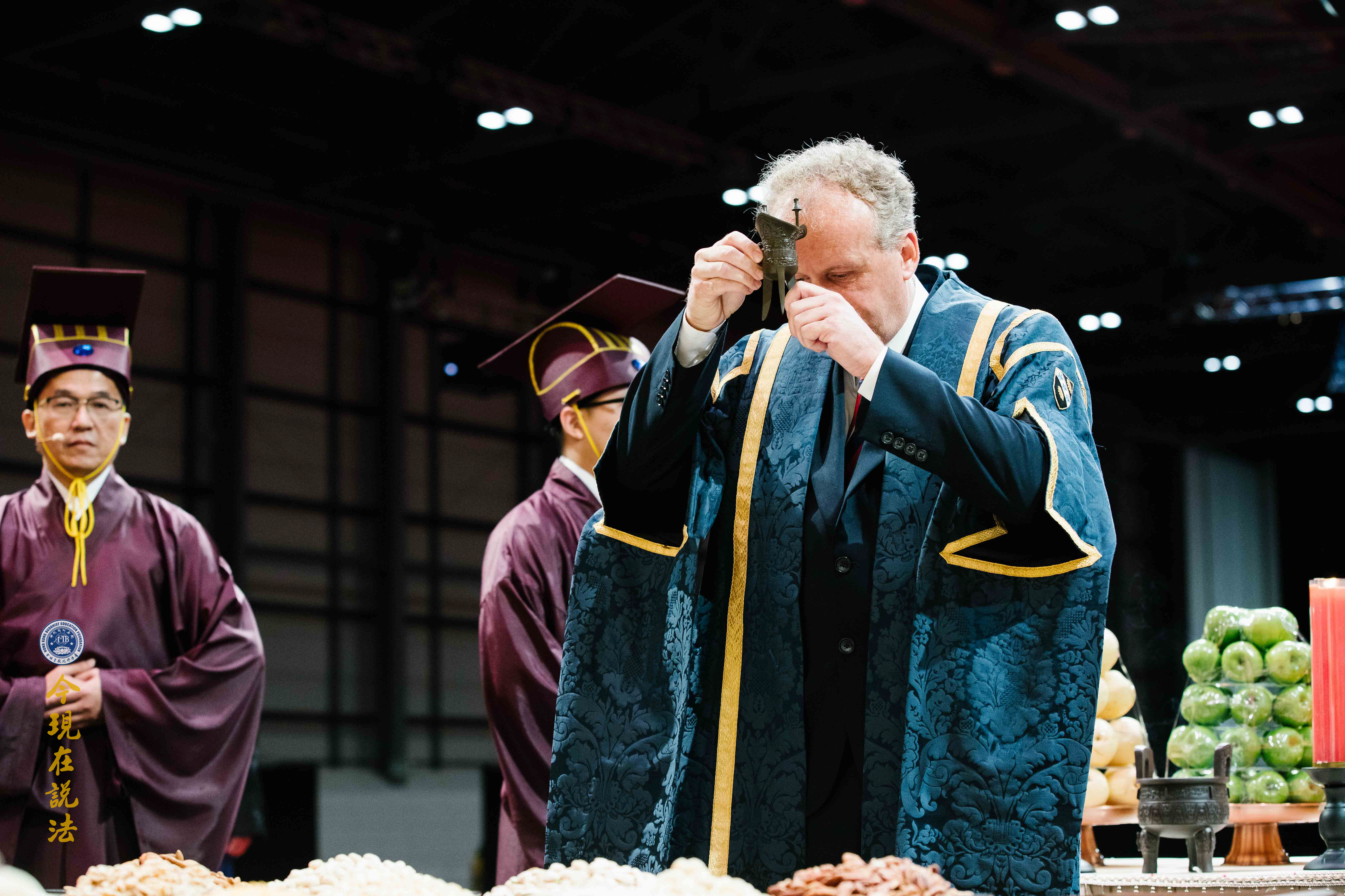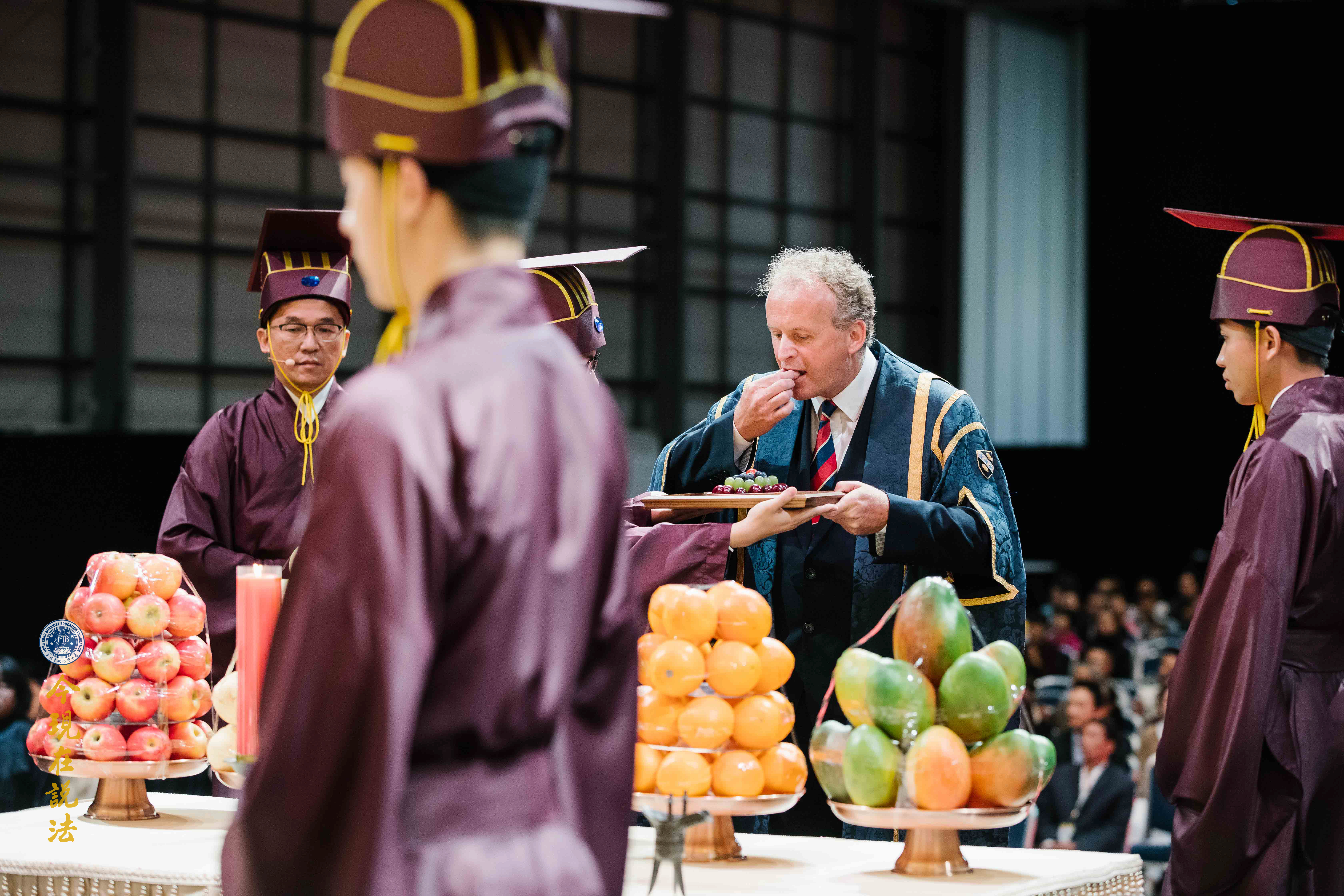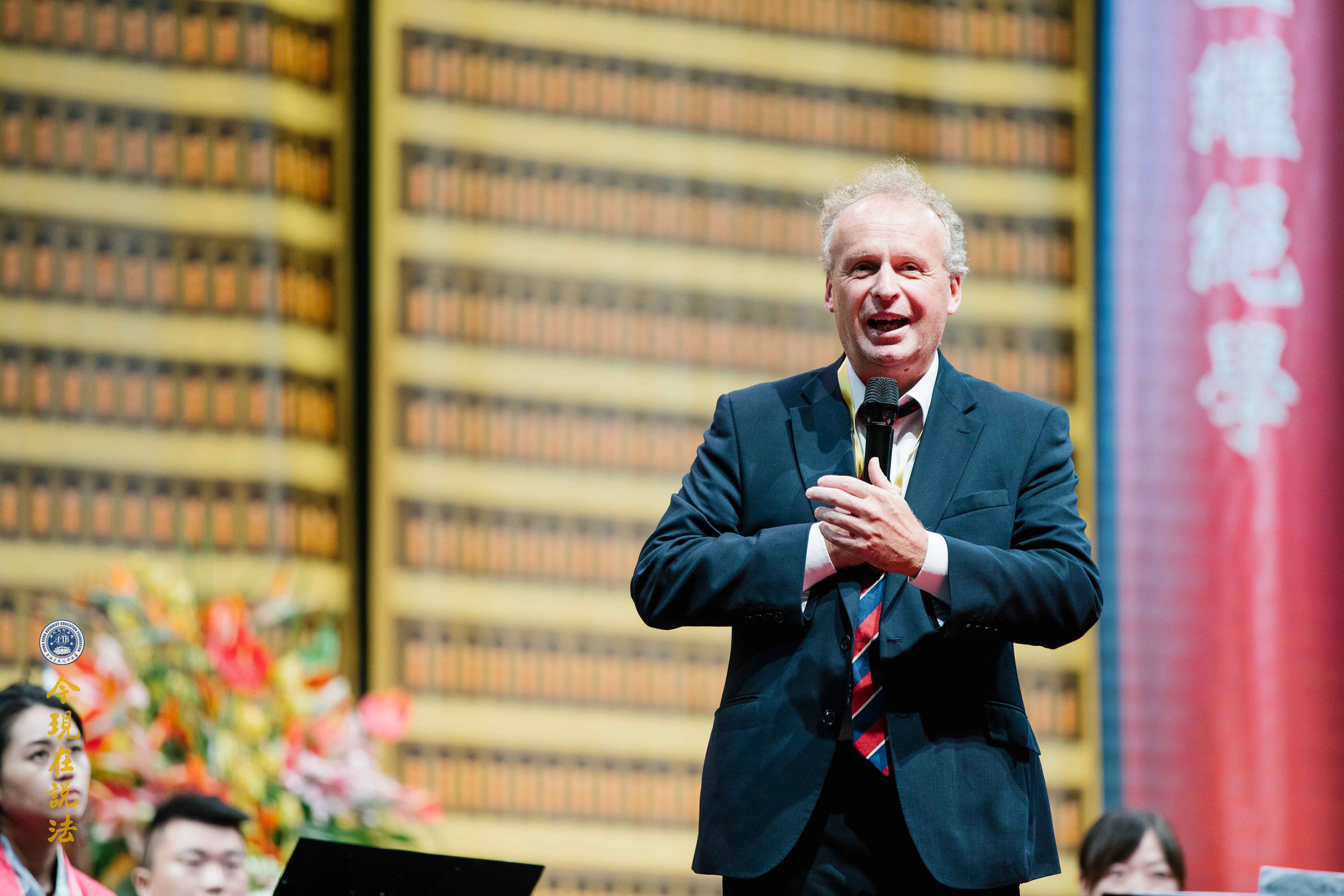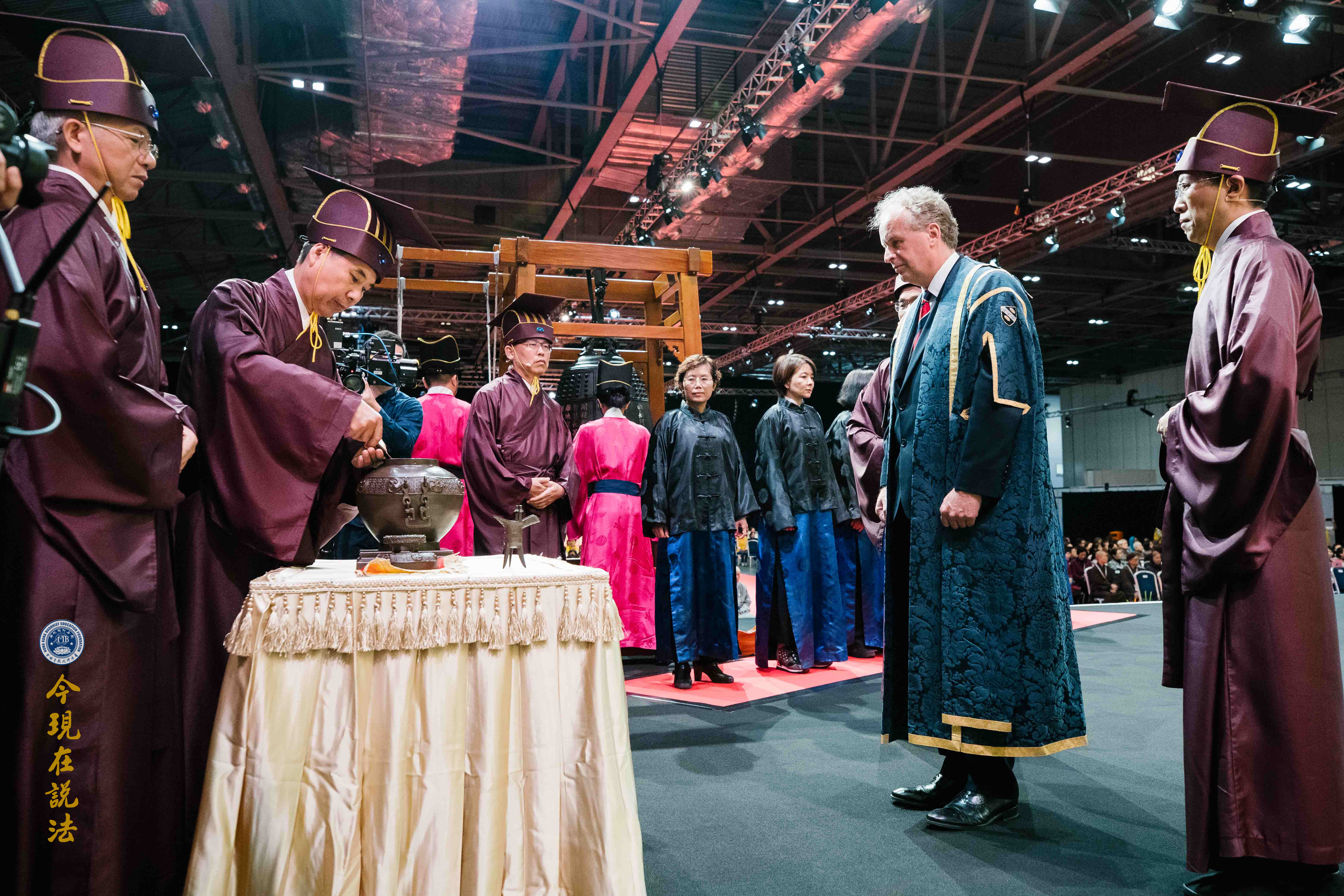 史密斯院長(英方主祭官)與華藏淨宗學會的法師們合唱《吉祥偈》:「願晝吉祥夜吉祥,晝夜六時恆吉祥」,傳達溫暖的祝福