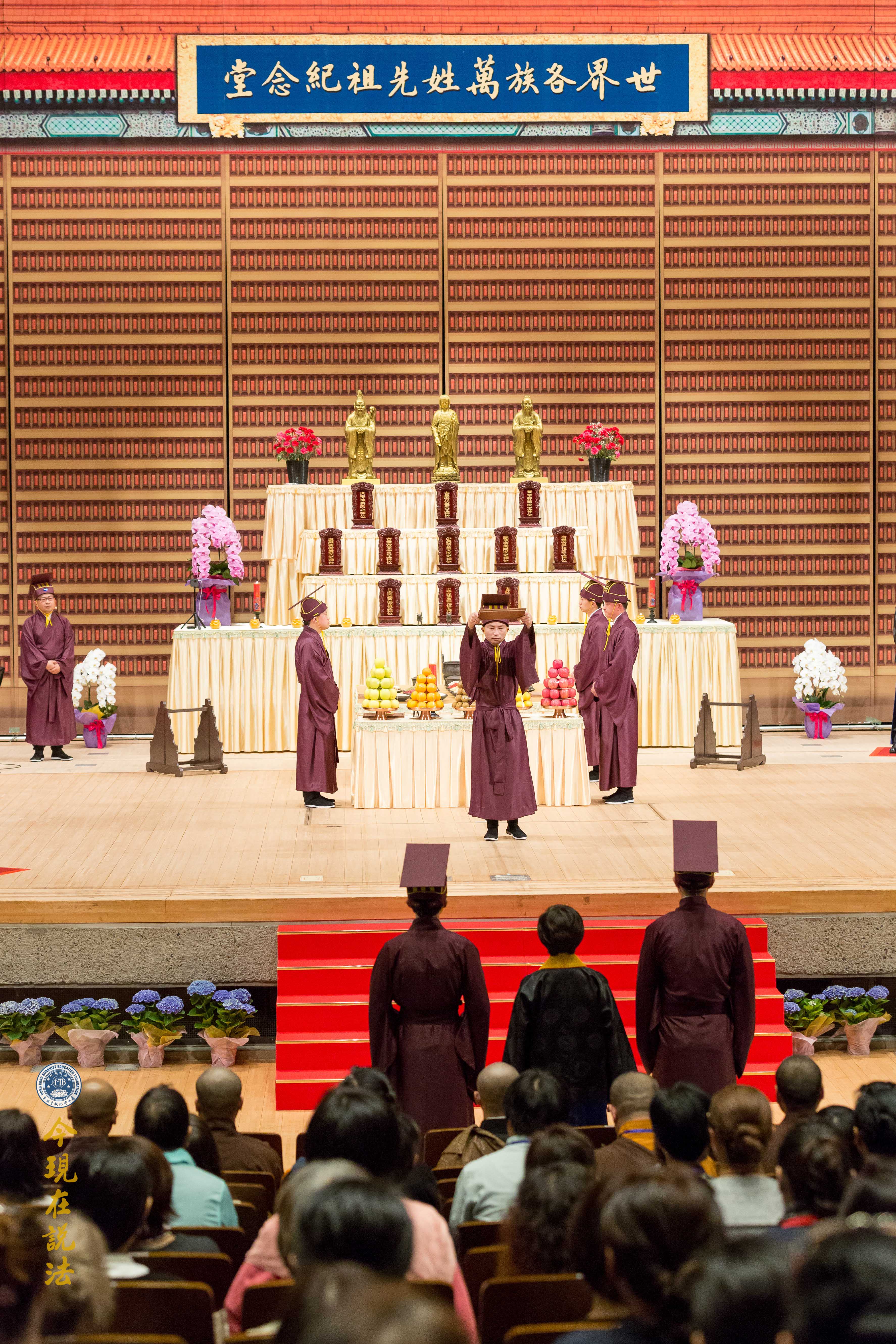 九十二歲高齡的淨空老法師親臨會場,與大眾、海內外嘉賓一同參加祭祖大典