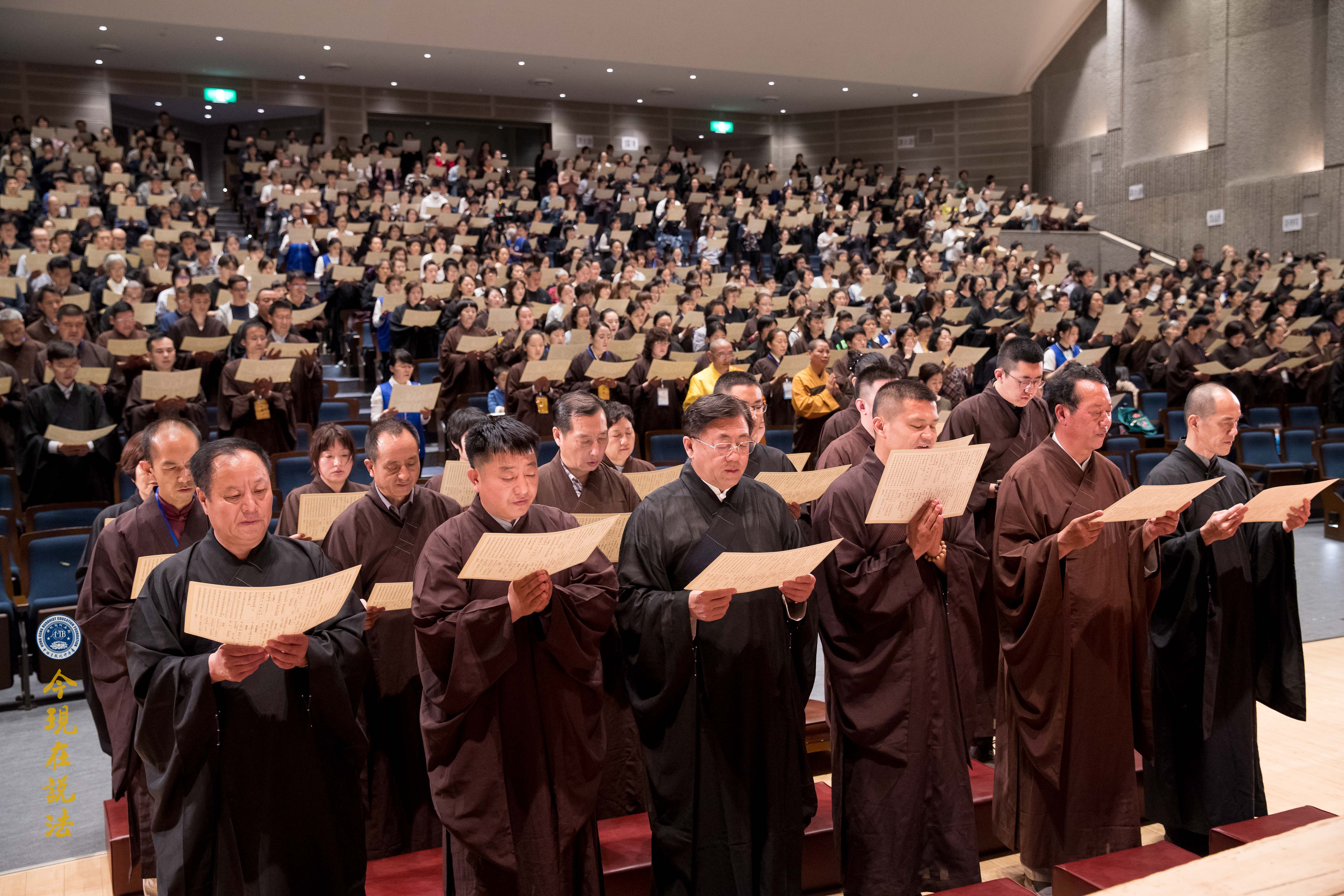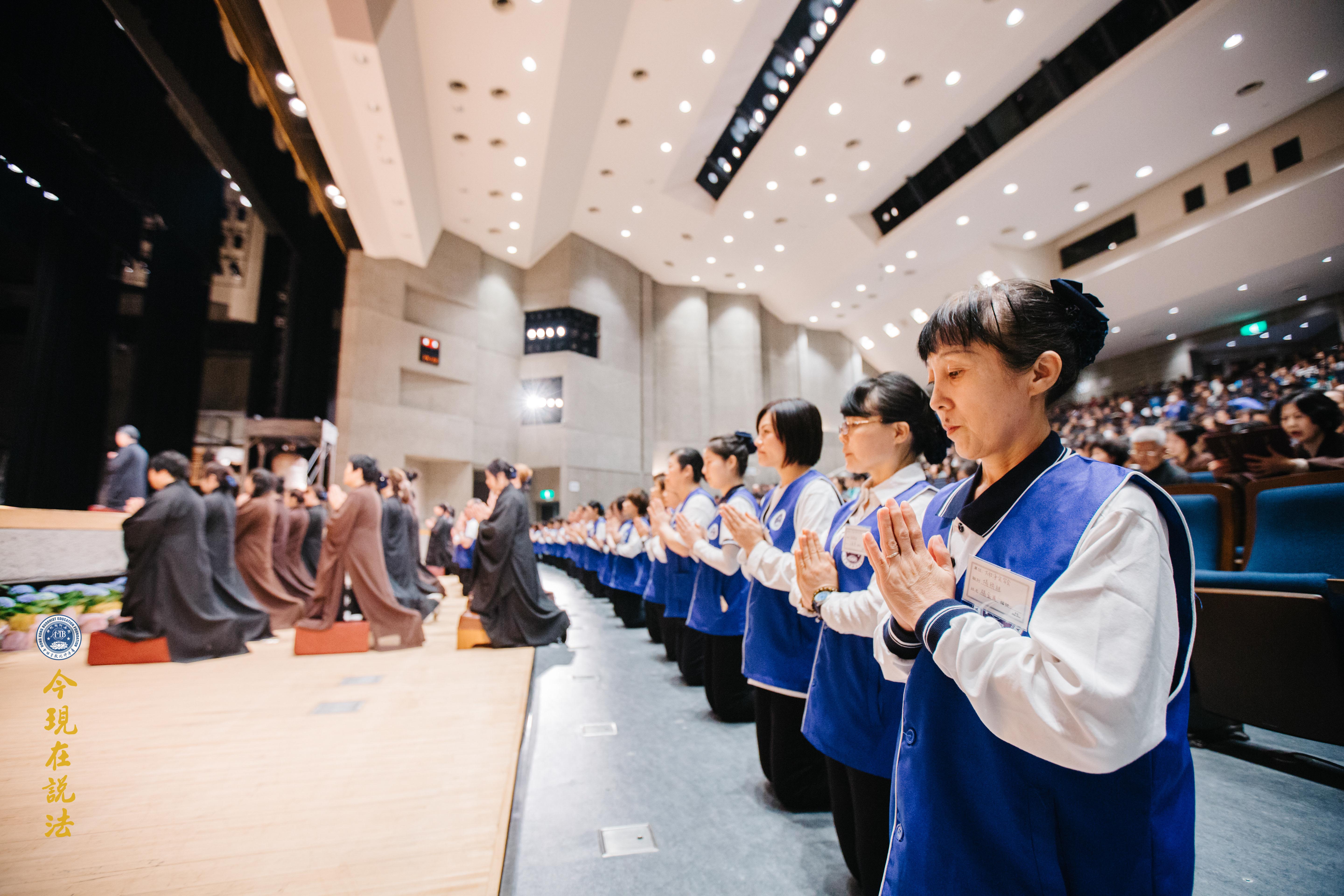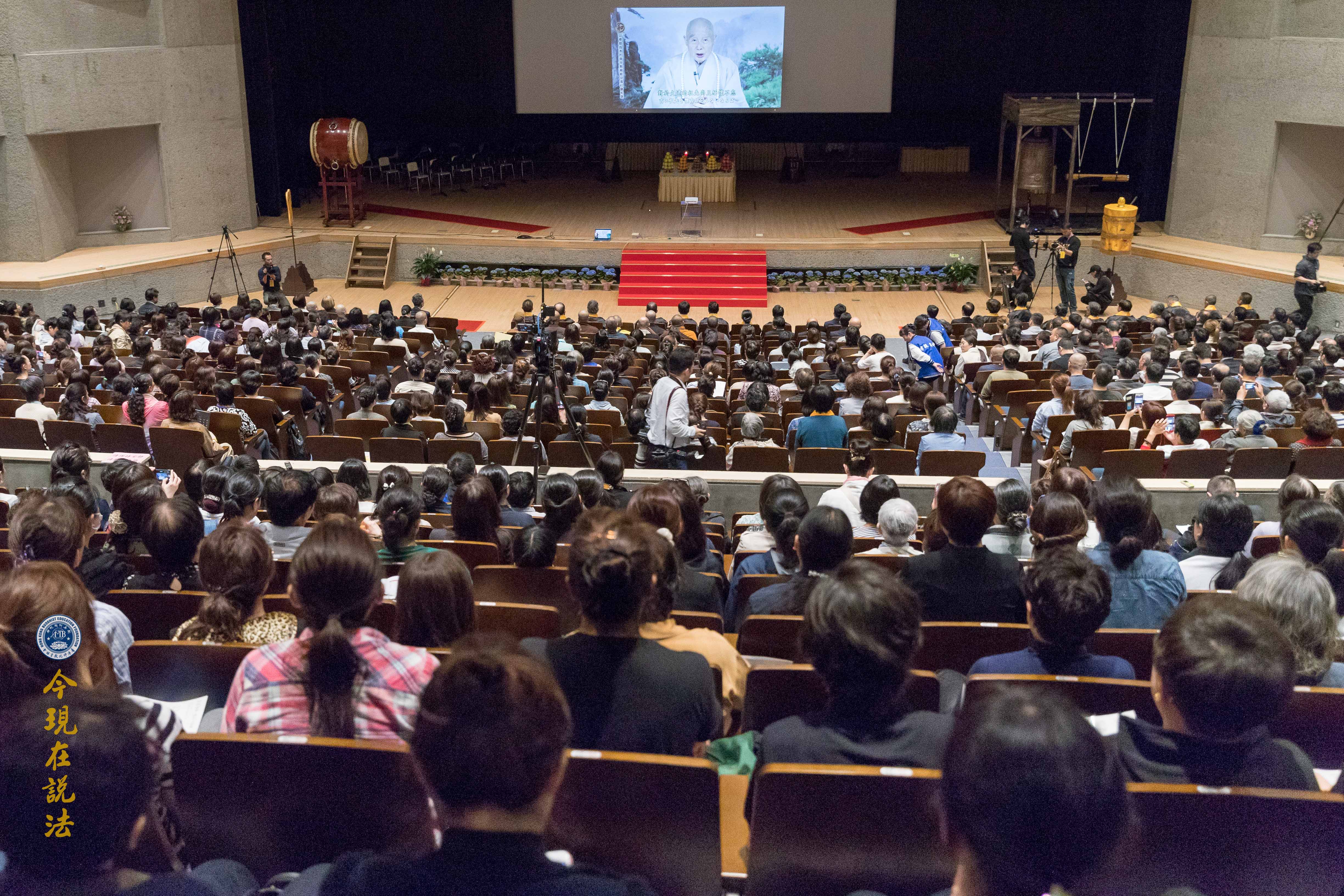 大眾於典禮前,靜心聆聽淨空老法師特為此次大典預錄的一席談話《以孝悌為本的普世教育能促進社會和諧》