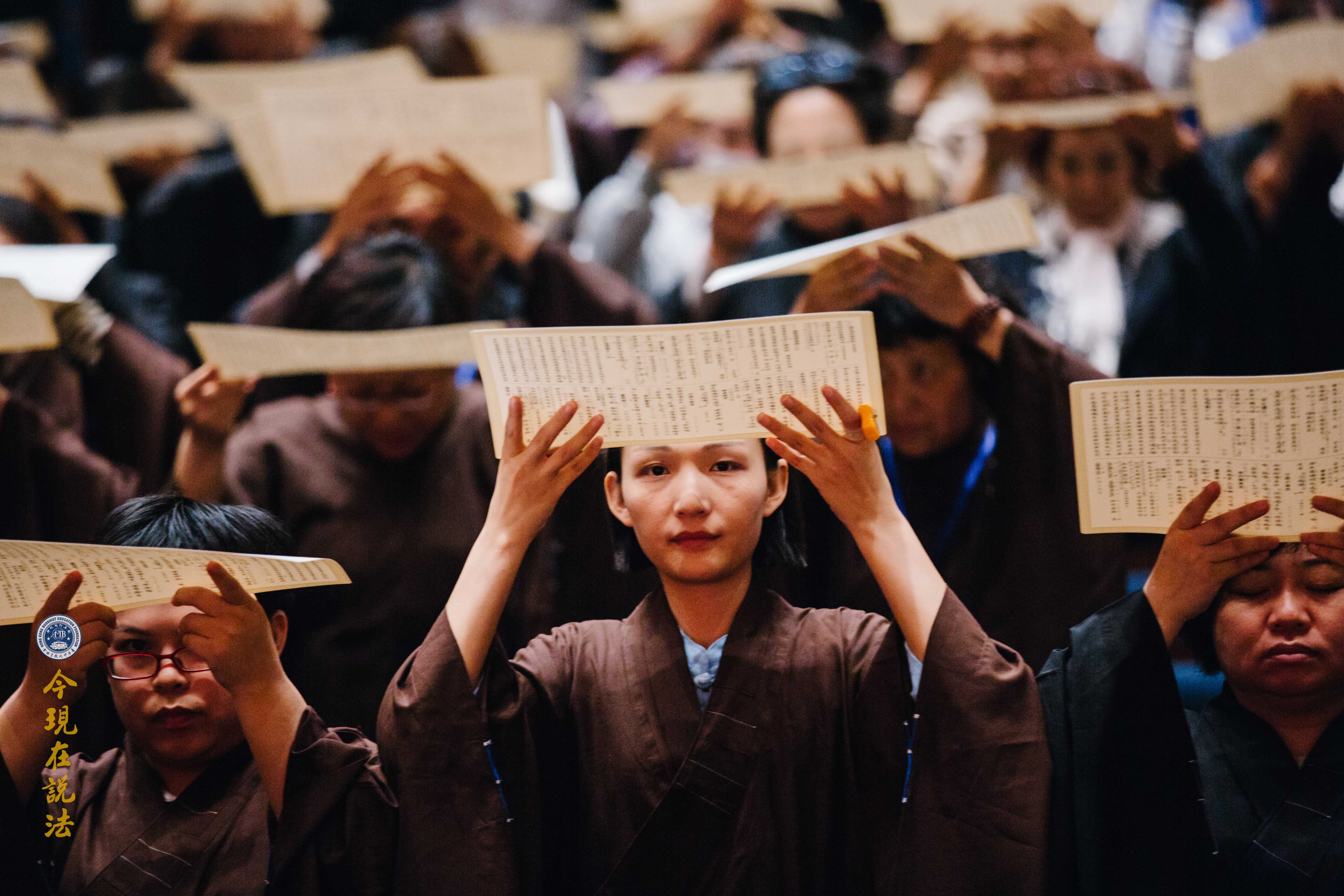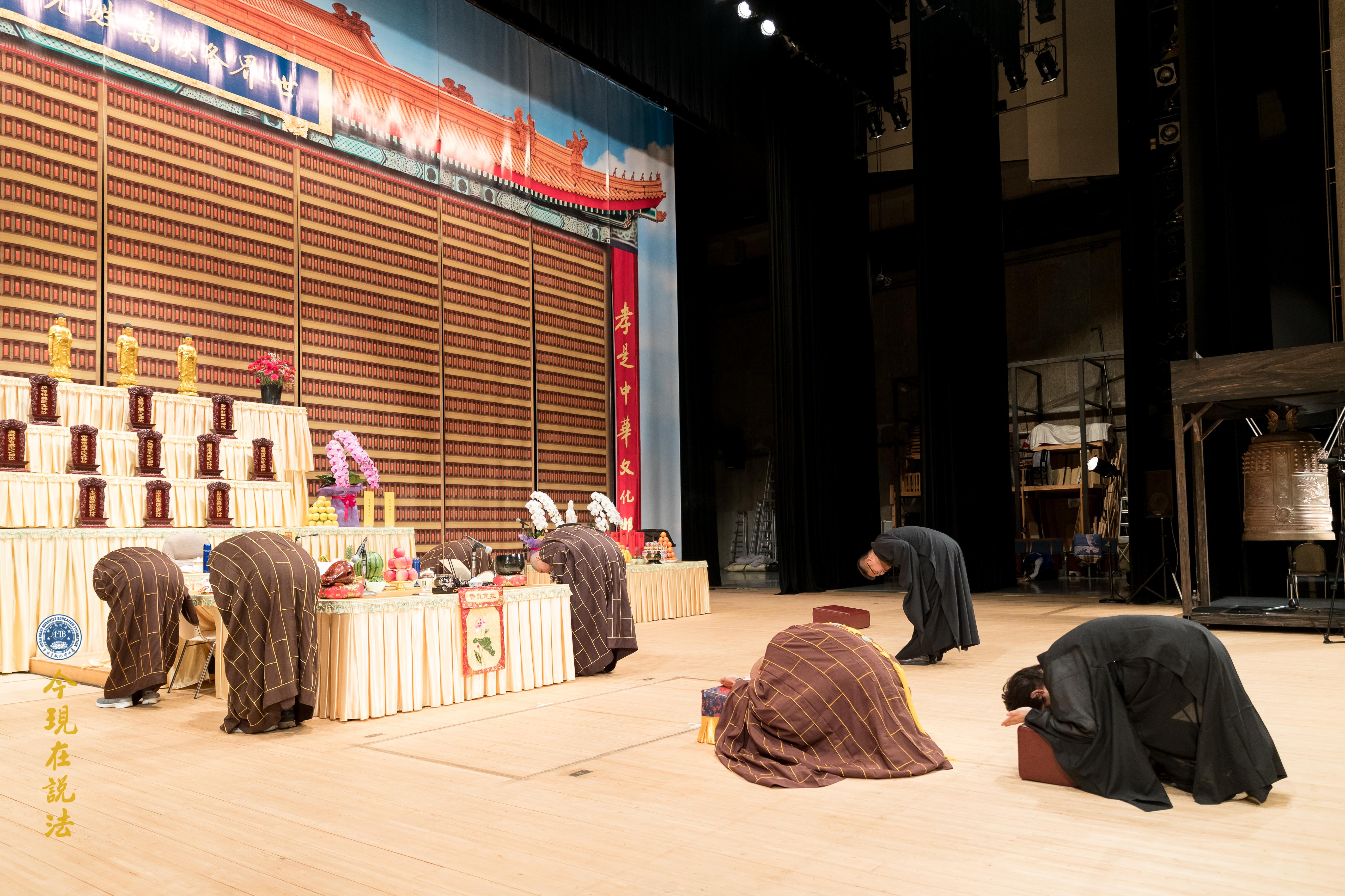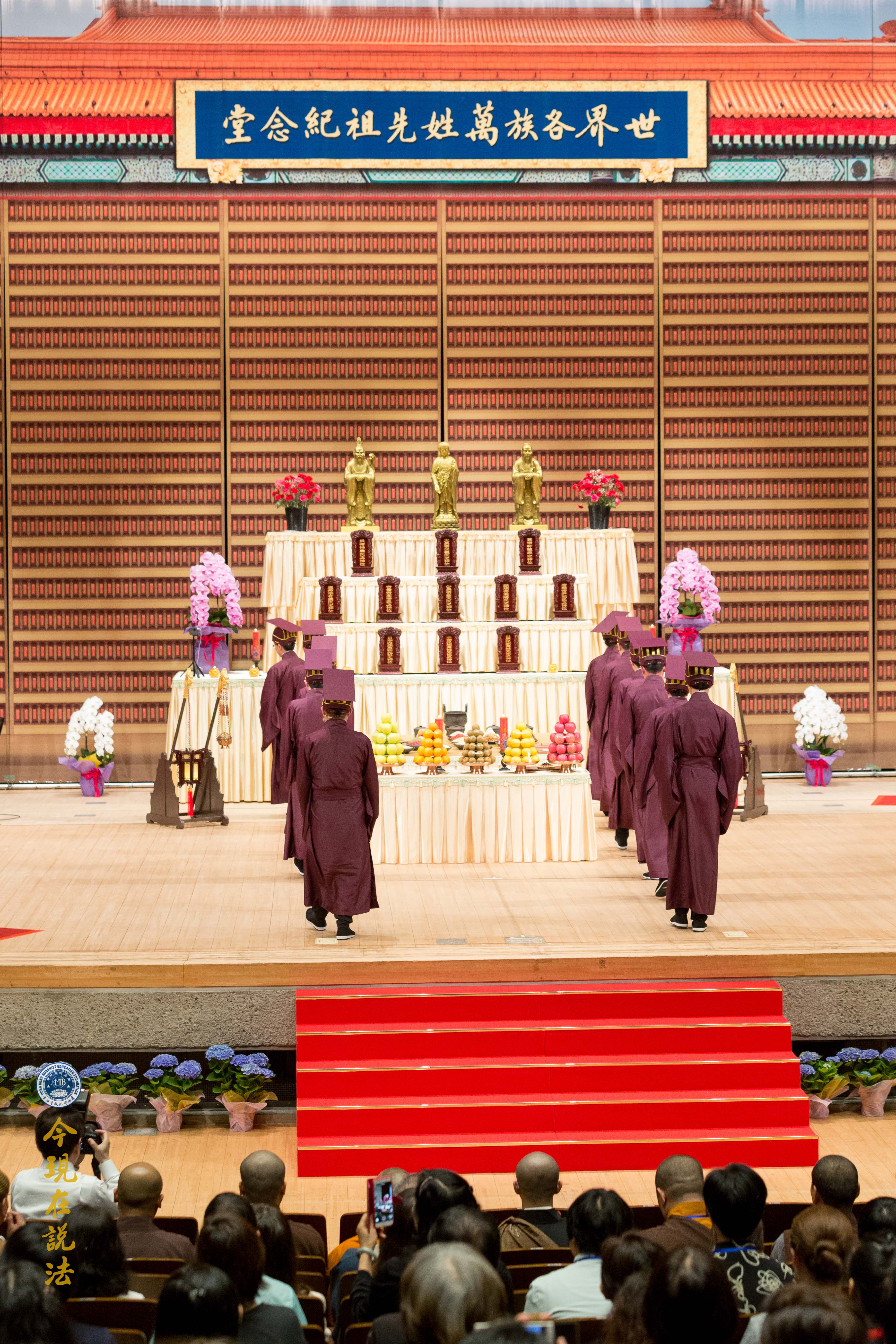 大眾於典禮前,靜心聆聽淨空老法師特為此次大典預錄的一席談話《以孝悌為本的普世教育能促進社會和諧》