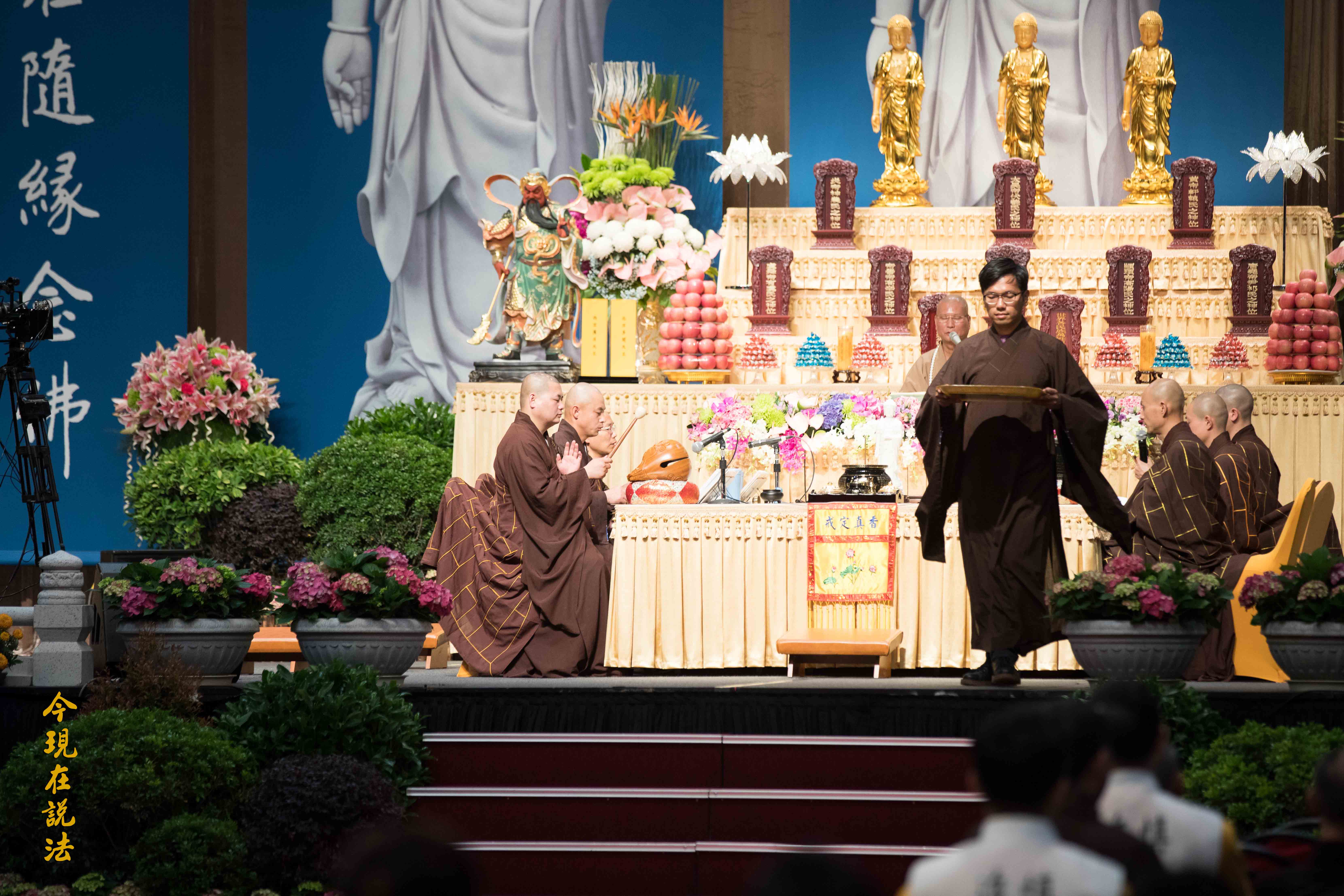 主法和尚勉勵大眾,虔誠與會功德不可思議