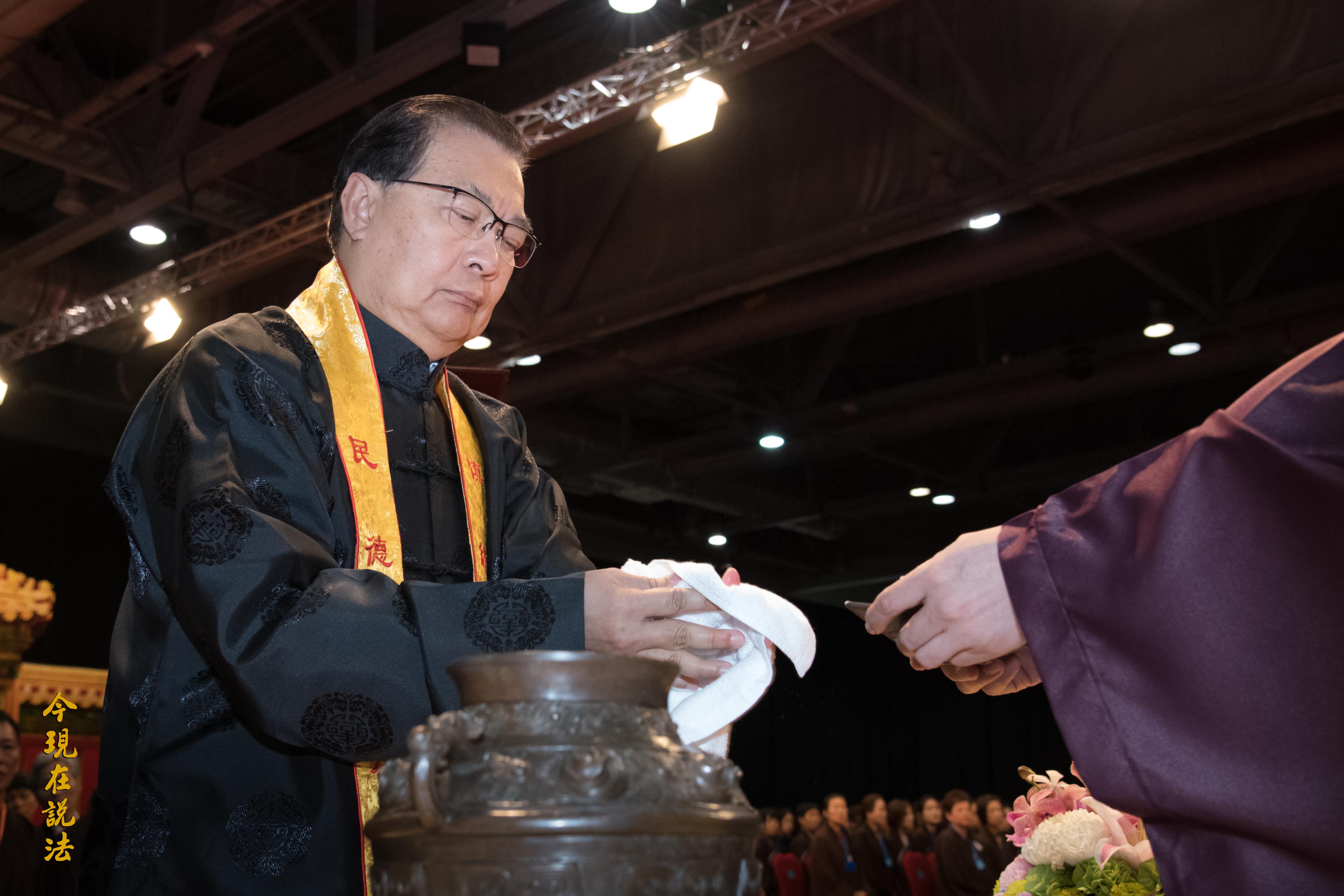主祭官全國人大常委譚耀宗先生依古禮盥洗,然後參祭