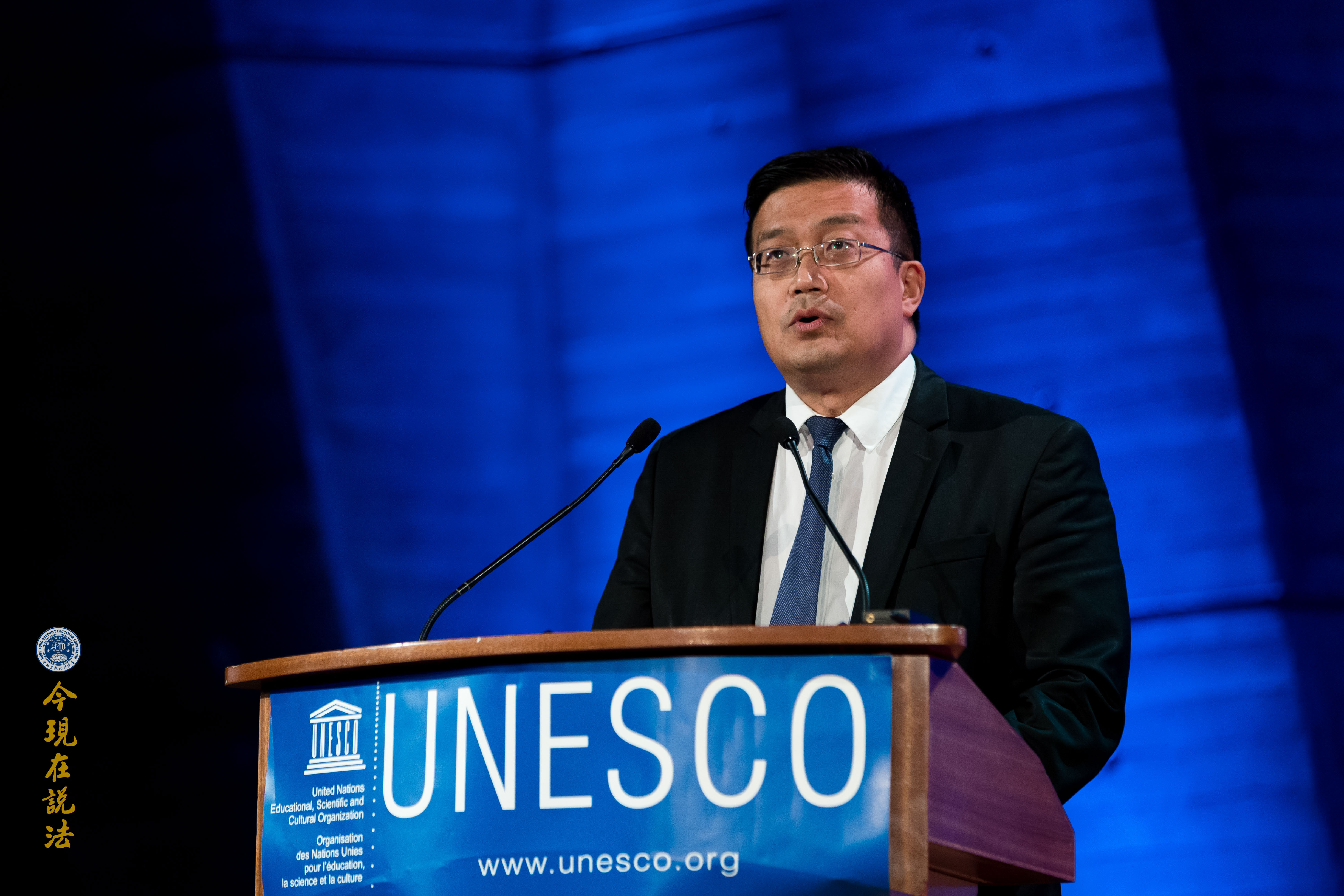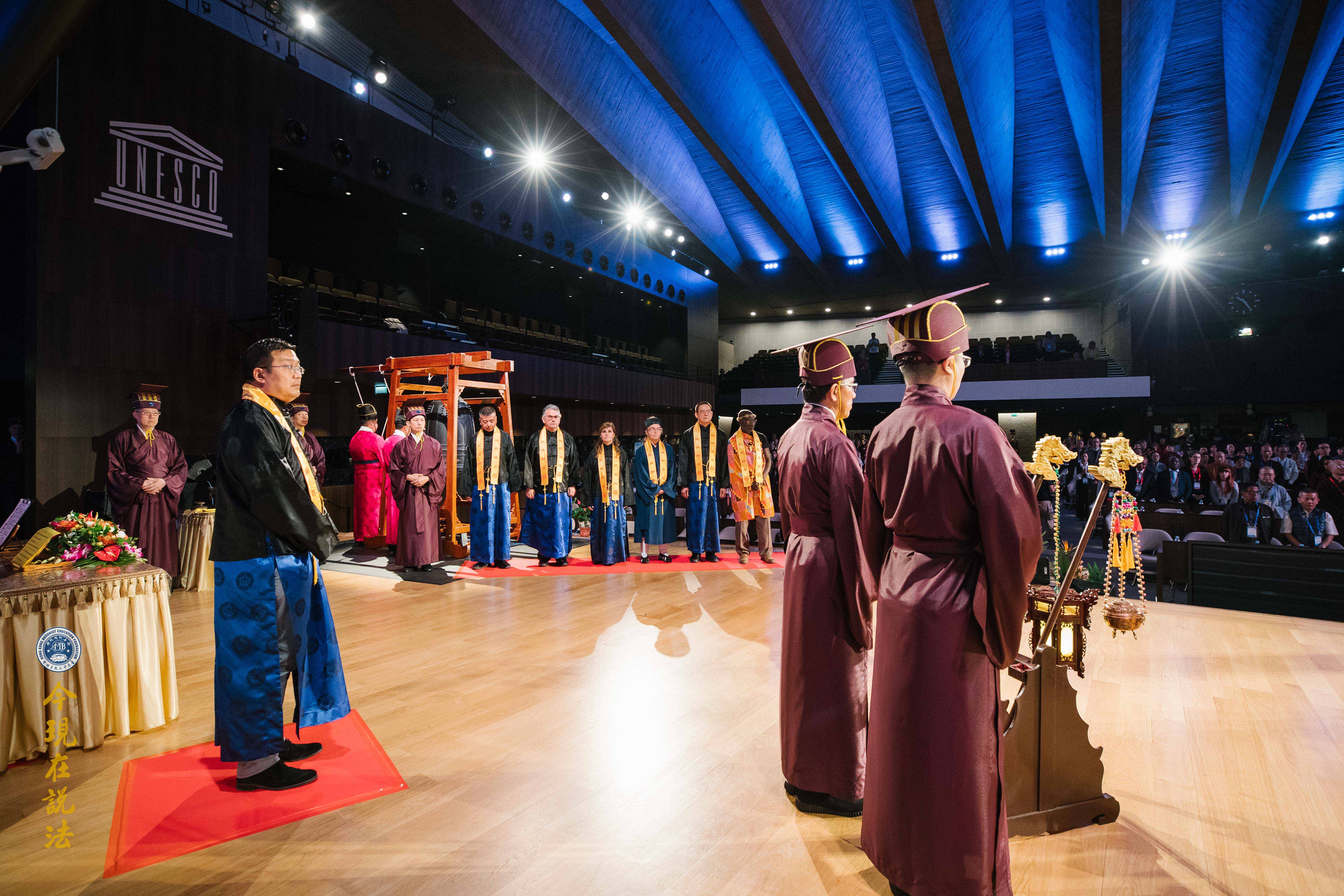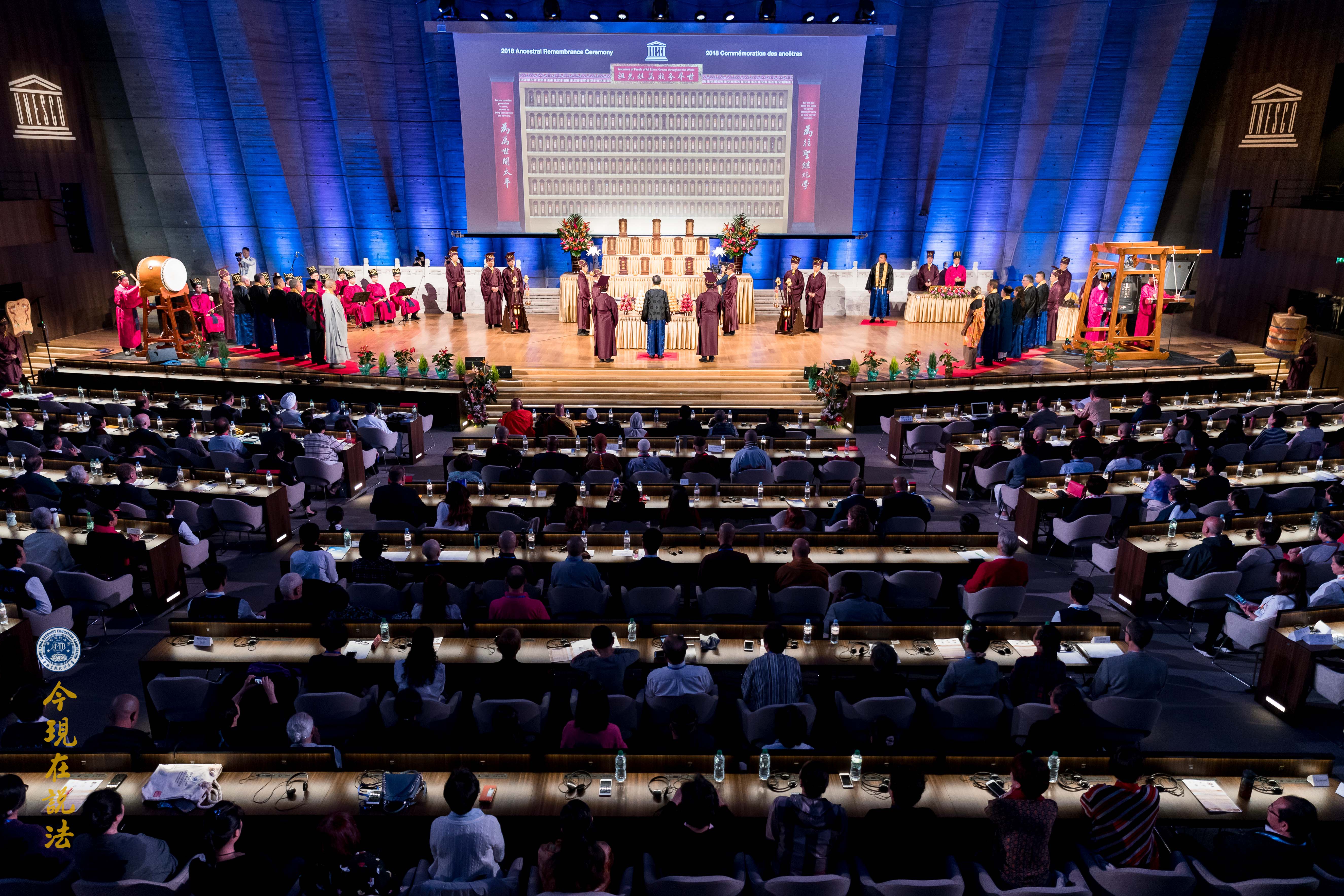 九月十九日上午,莊嚴肅穆的「全球祭祖大典」於聯合國教科文組織總部舉行。