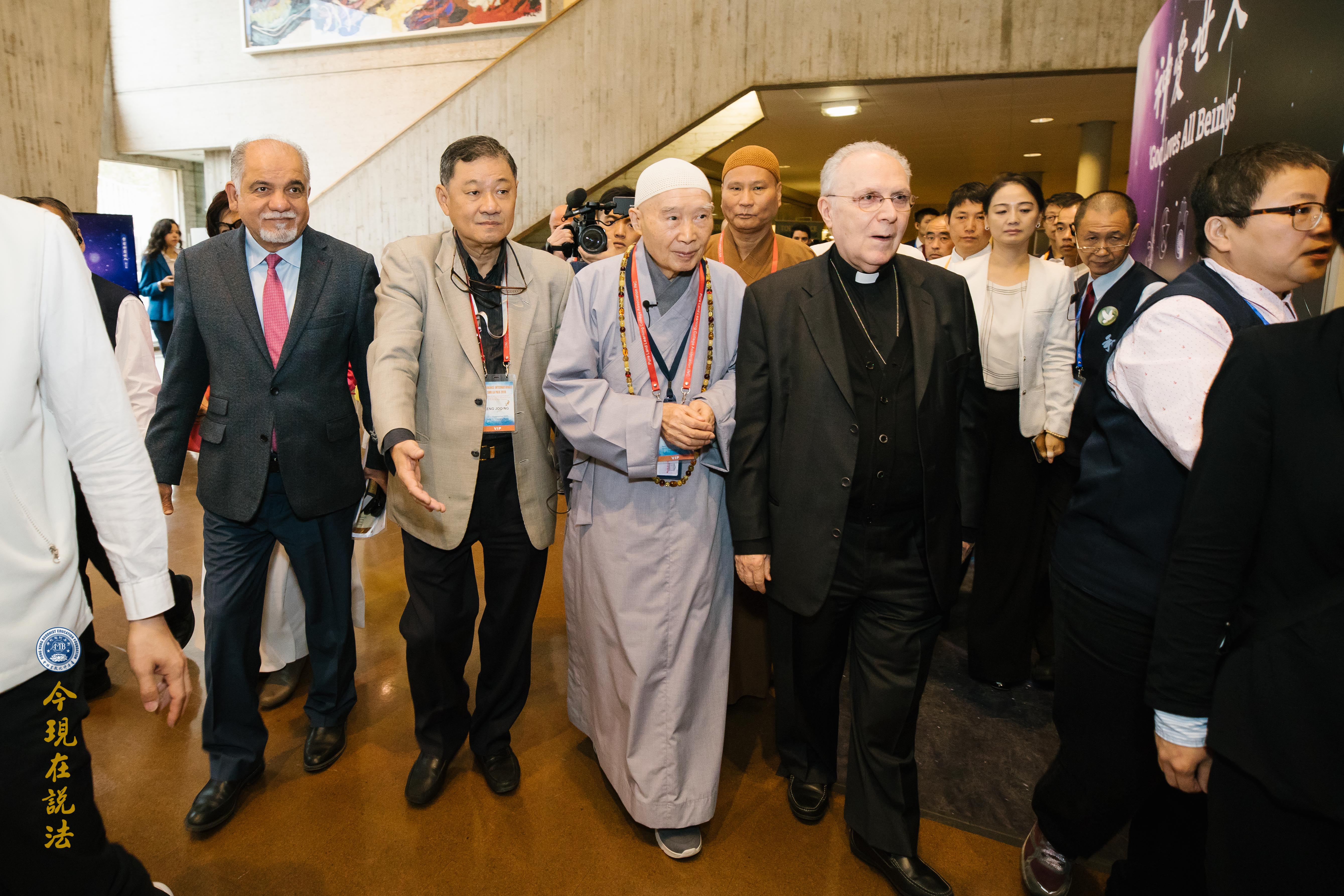 淨空老法師出席大會活動,與大使、專家學者們一同步入會場。