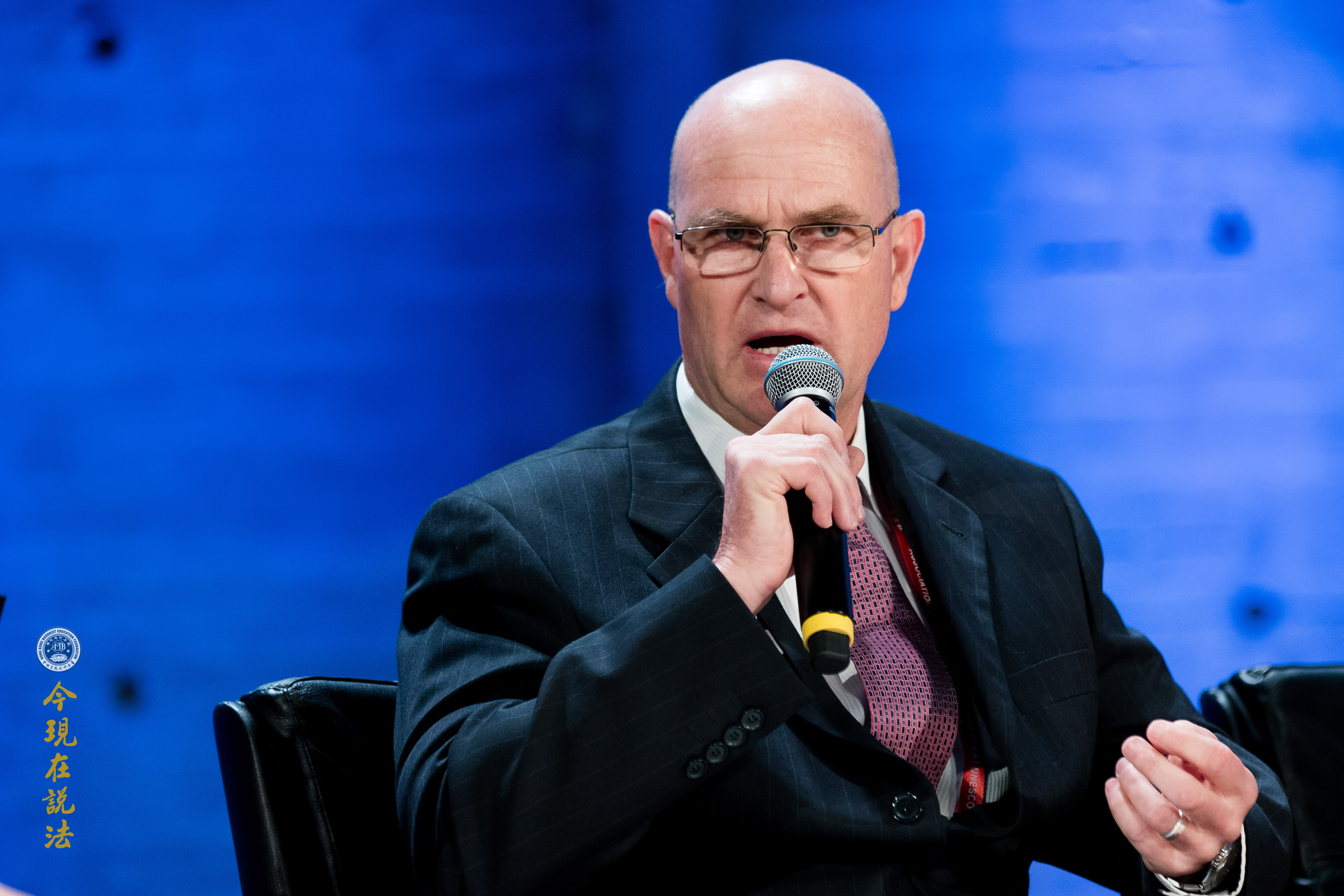 國際神學院副校長德梅爾先生(右三)主持第二場討論會,探討主題為「神愛世人,普世教育對世界的影響」。