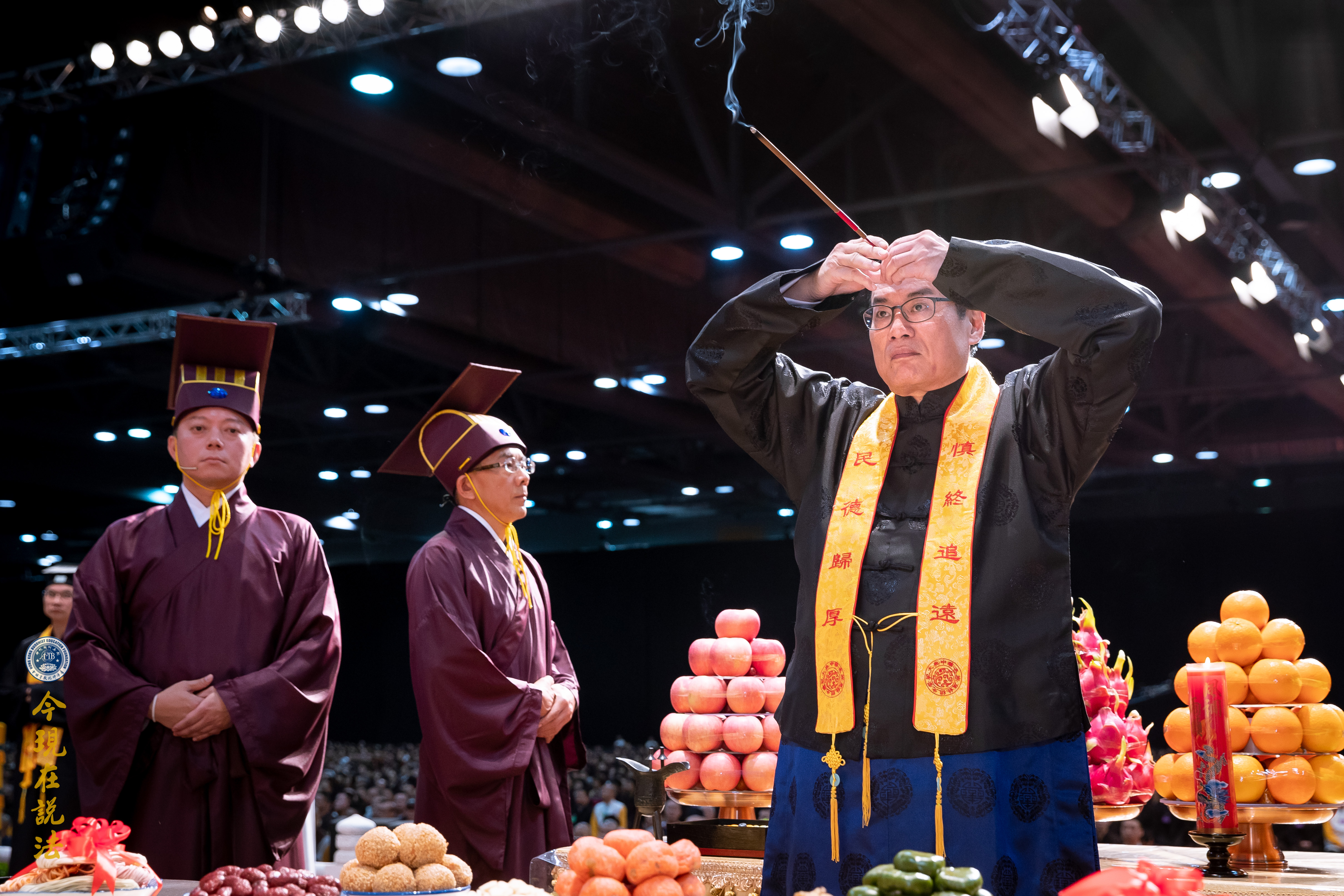 祭祖大典設世界各族萬姓先祖牌位,教人愛人如己,事死如生。繼孝思,則人心厚;篤人倫,則風俗醇;進而隆國運,開太平。