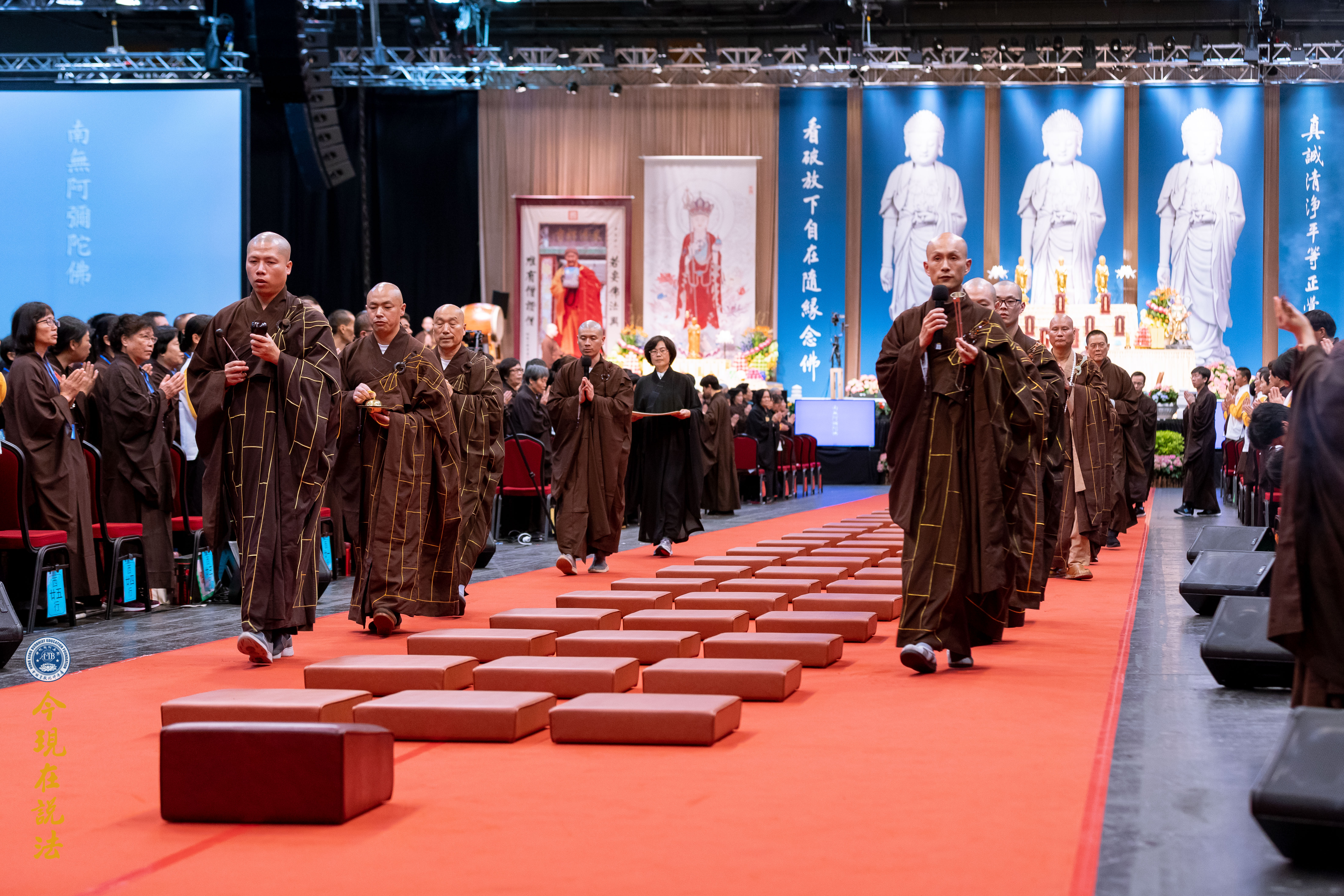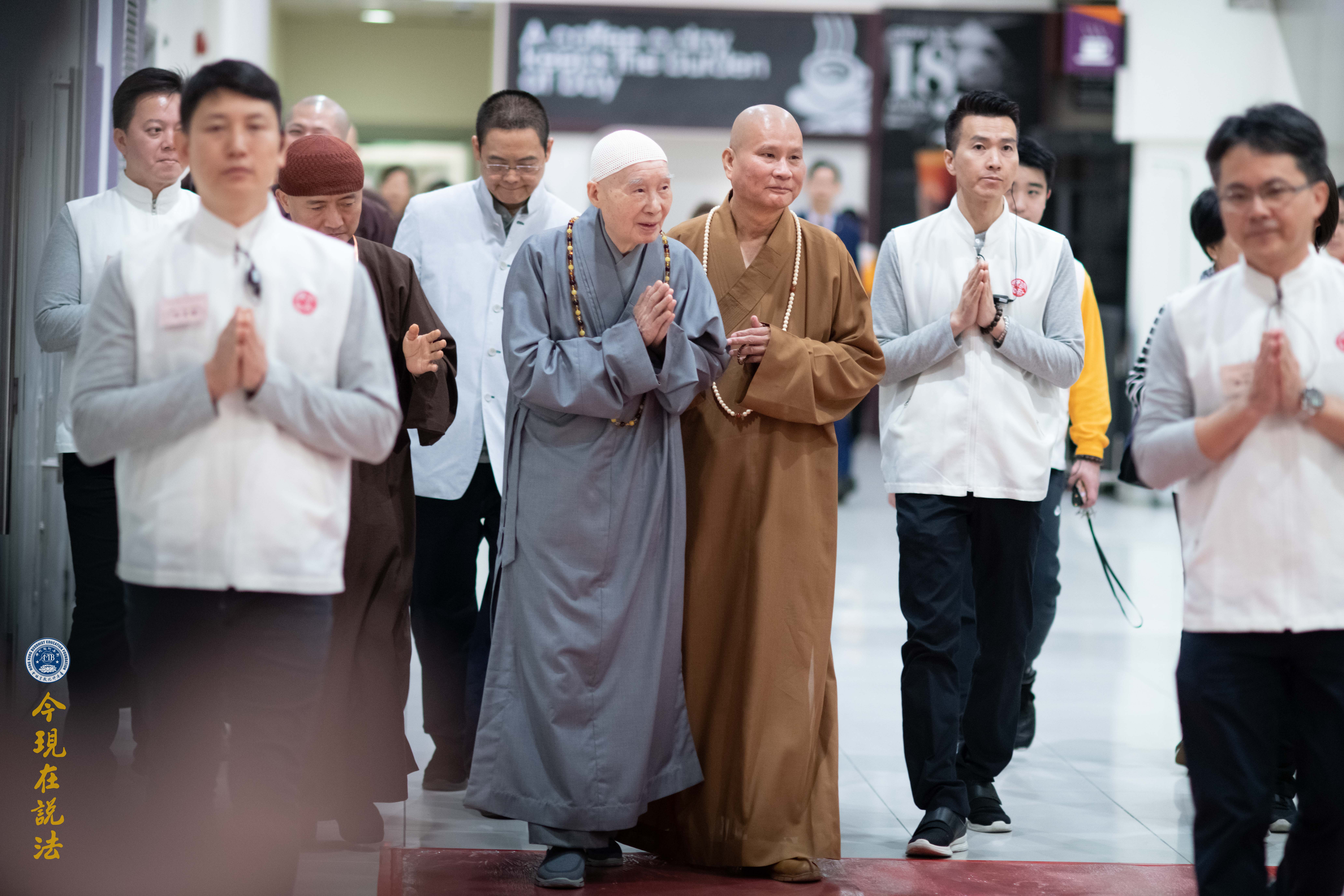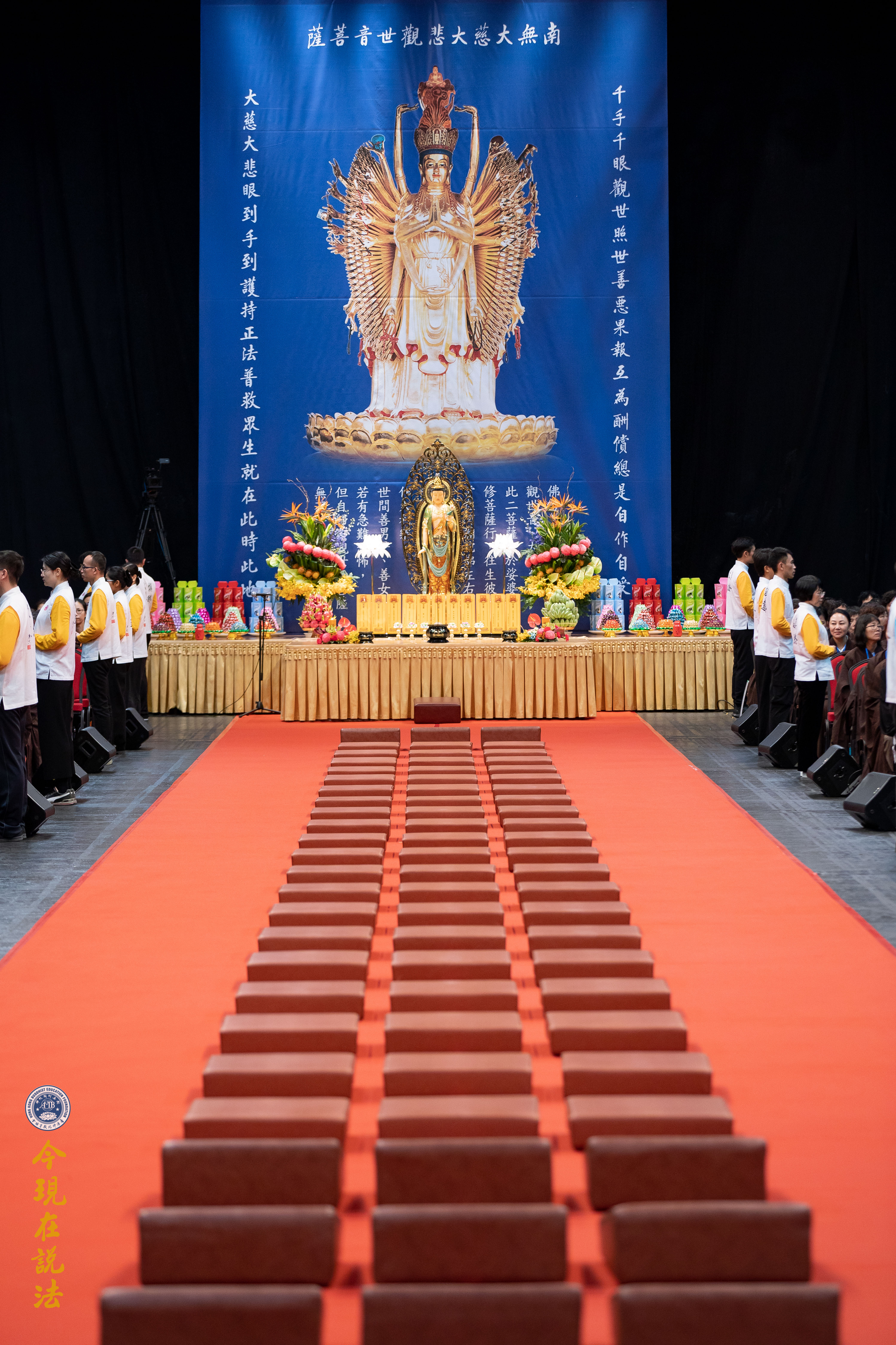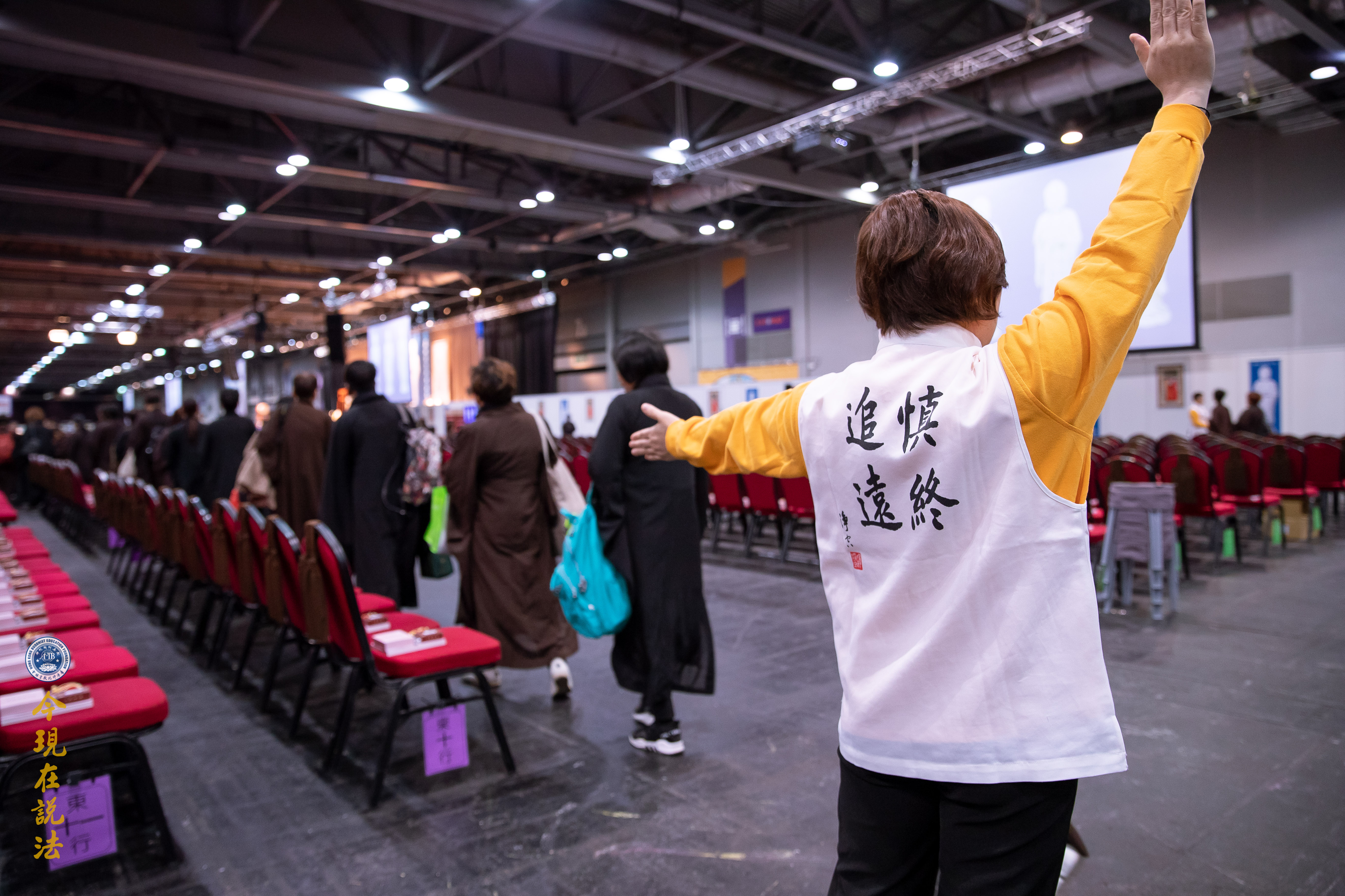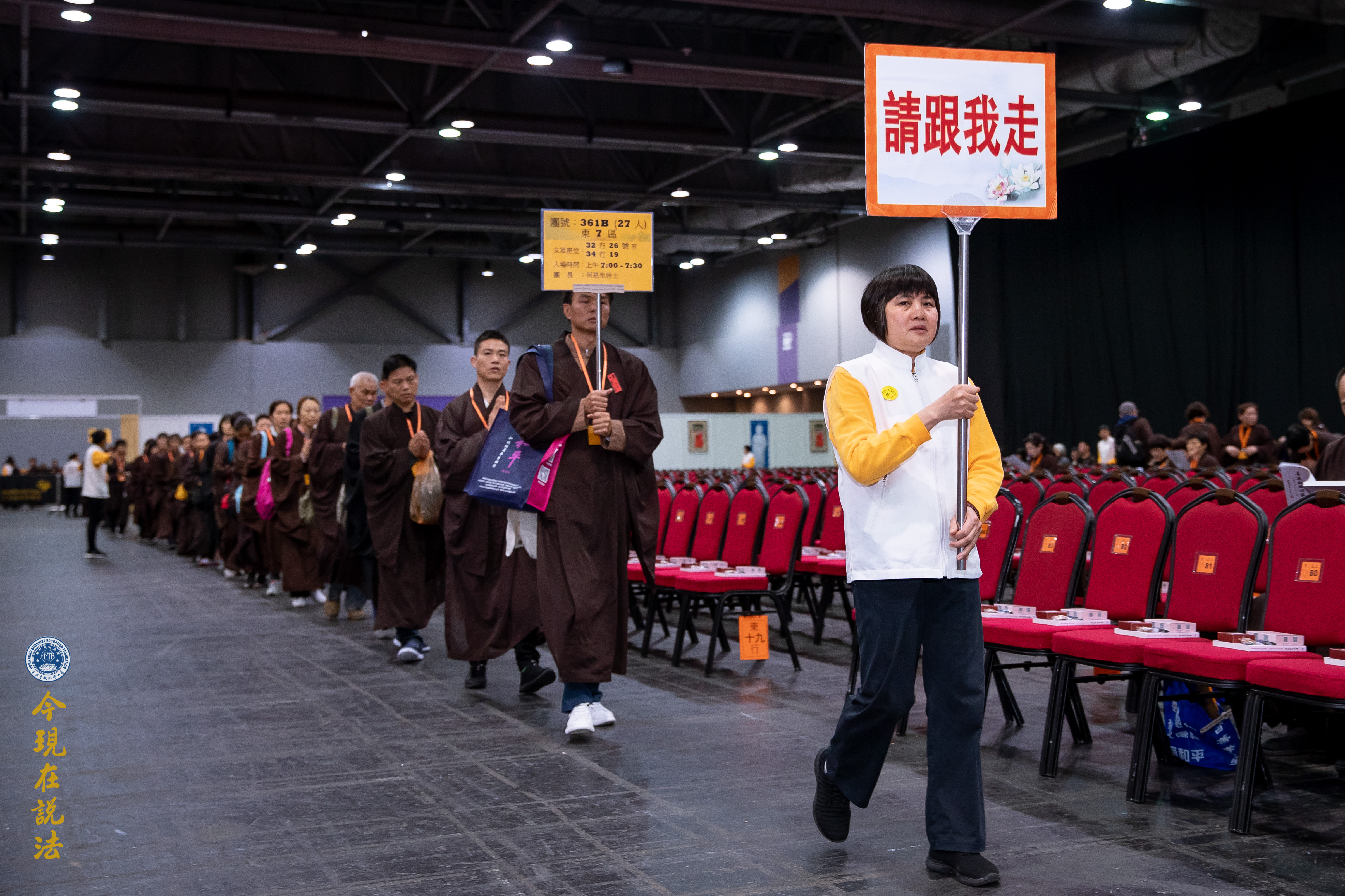 法會義工引領與會者有秩序入場。