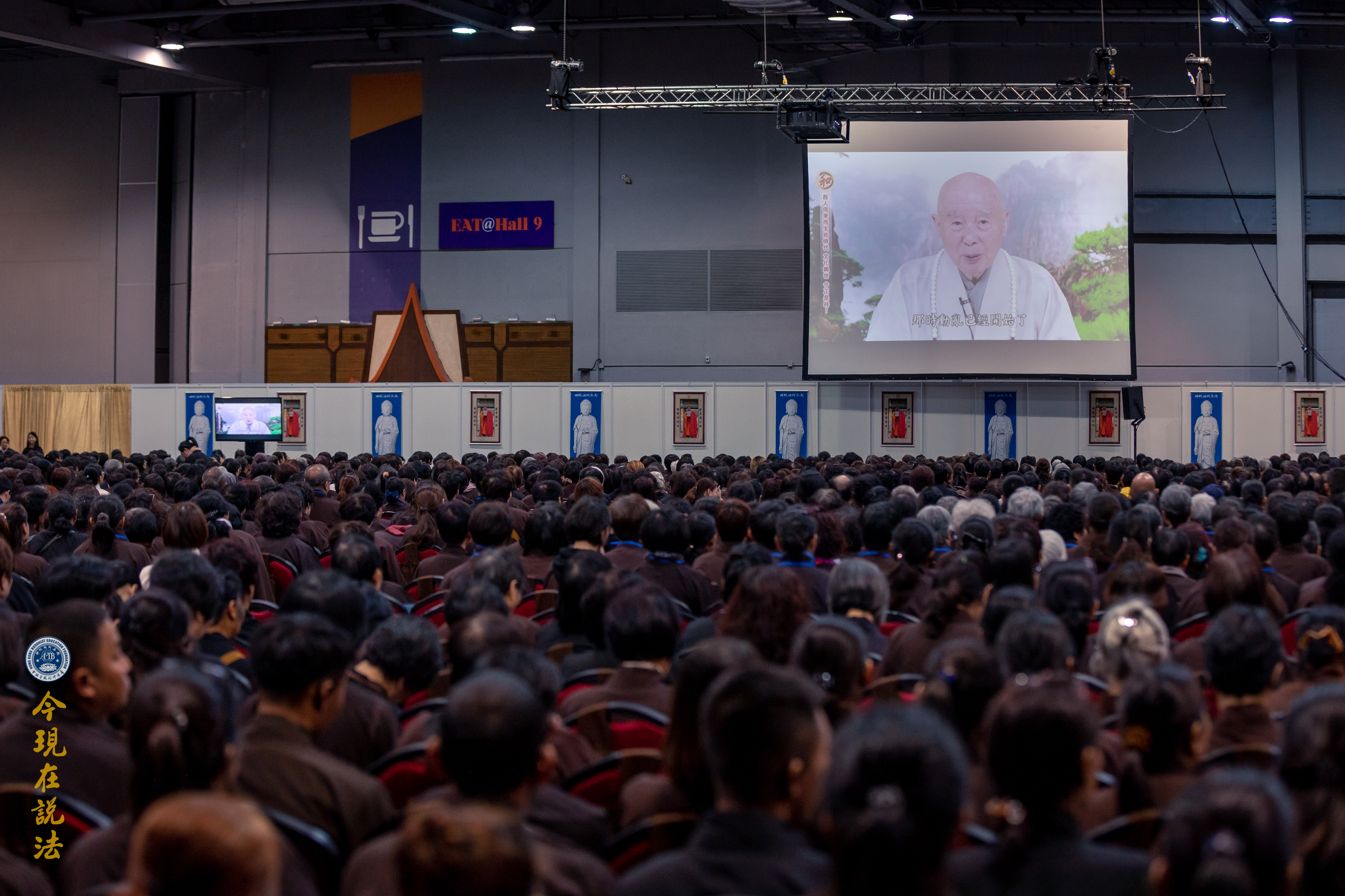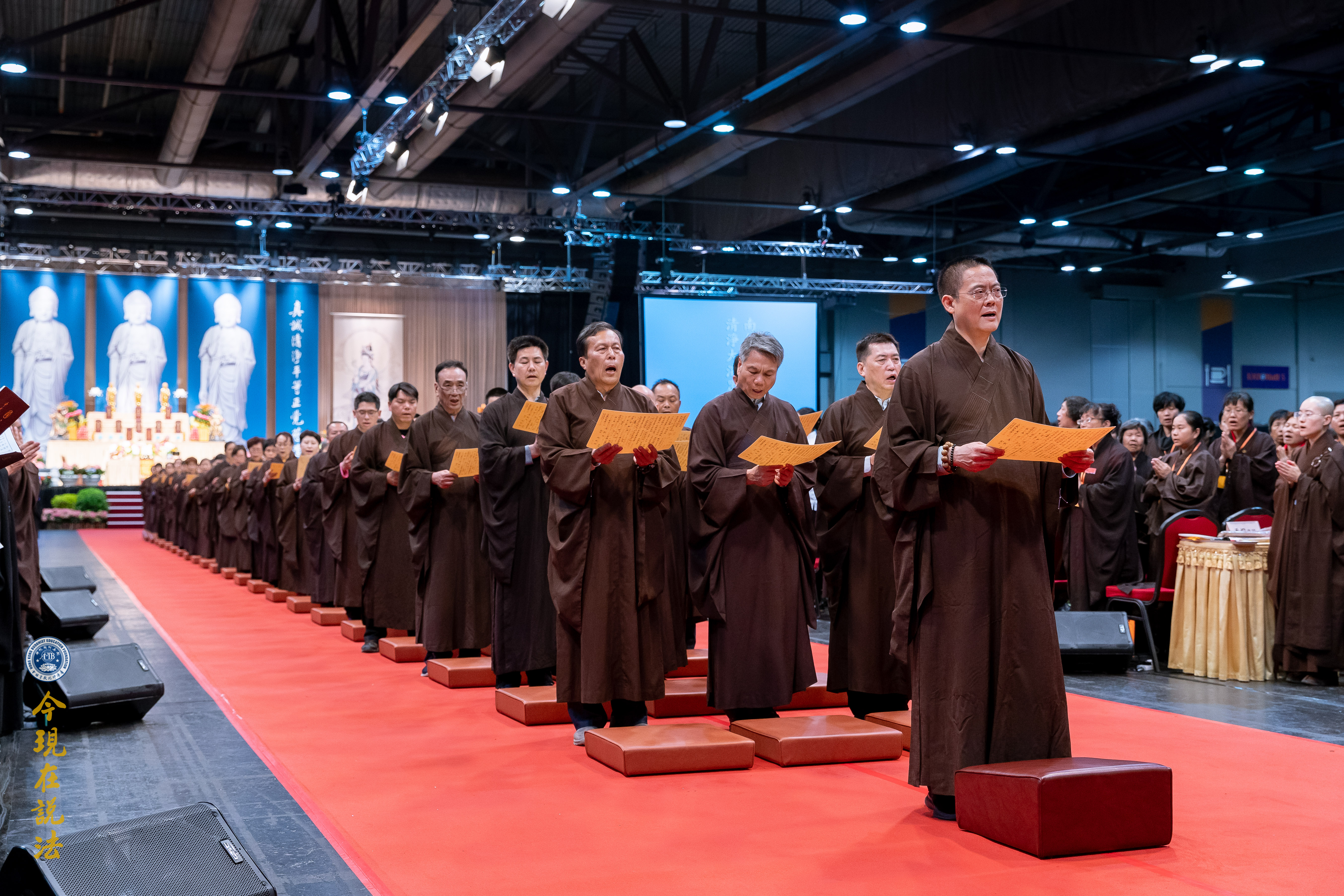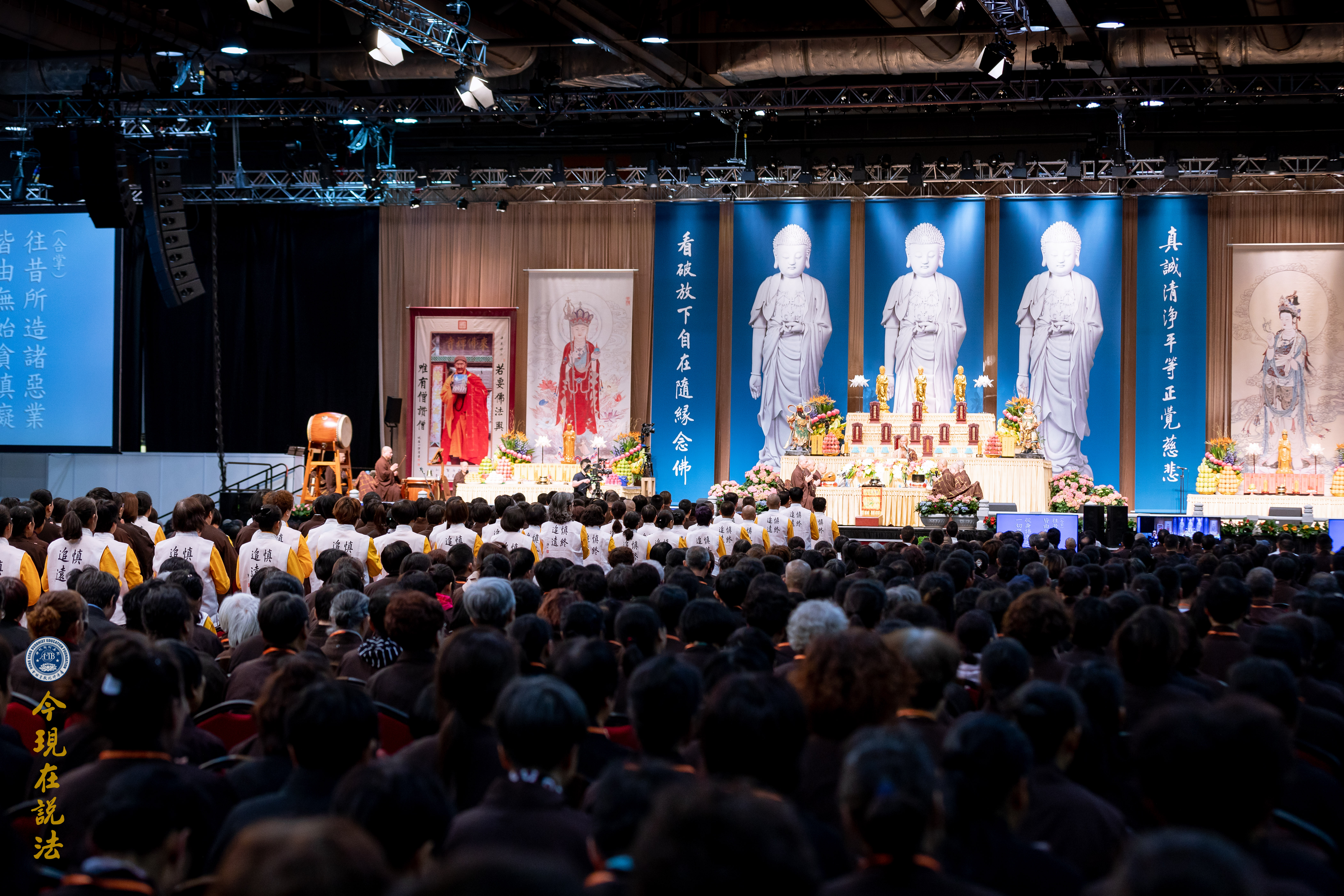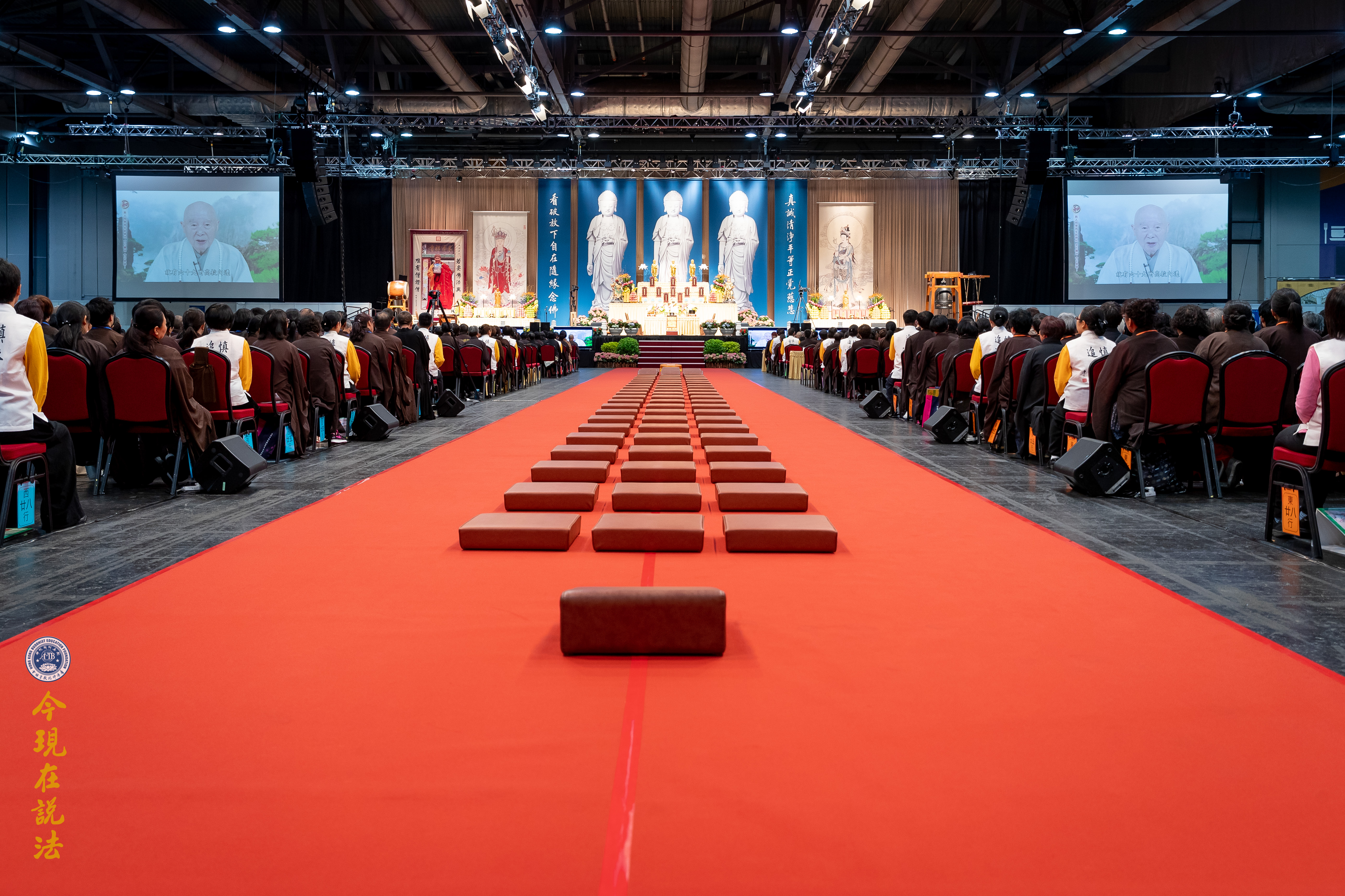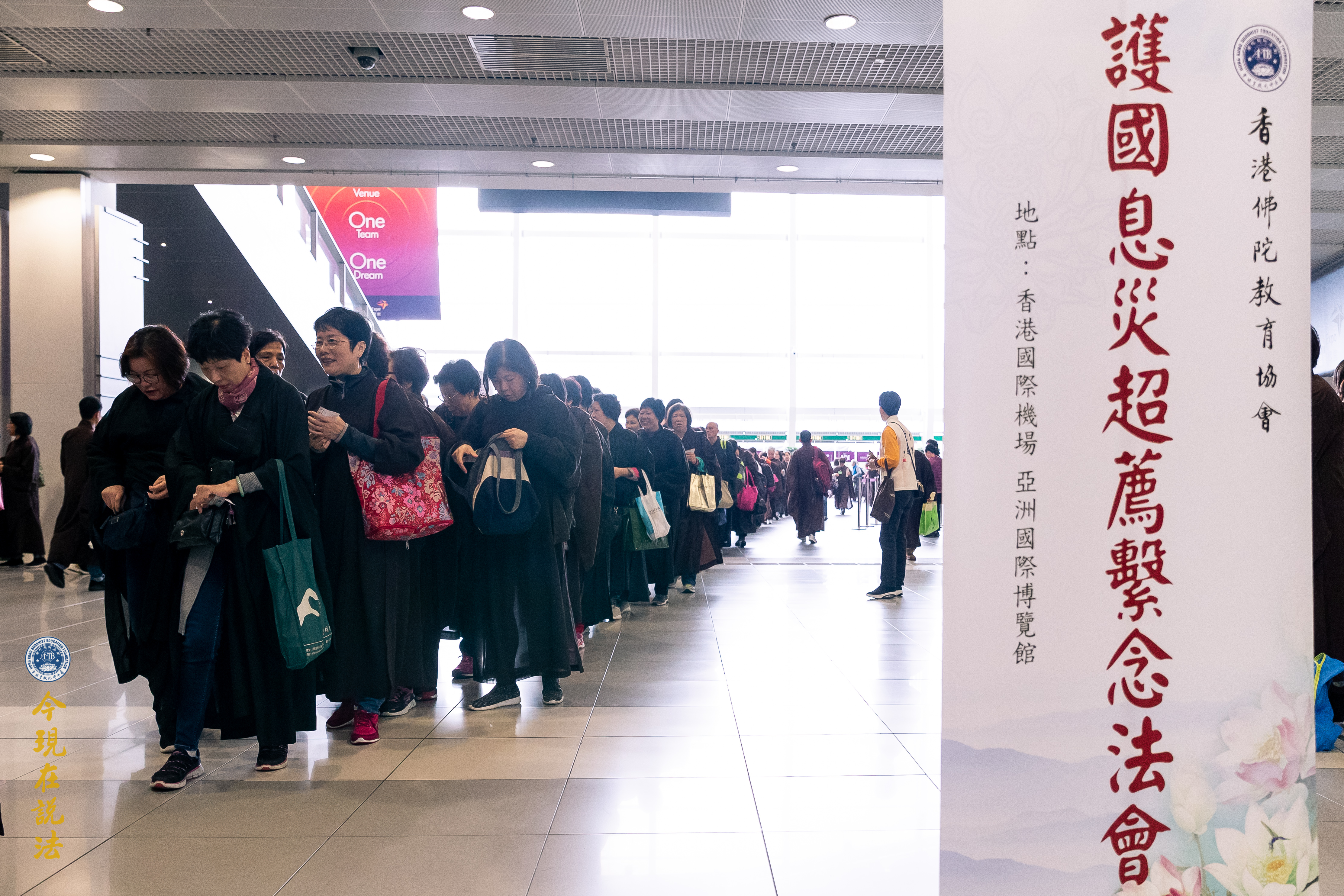 法會義工引領與會者有秩序入場。