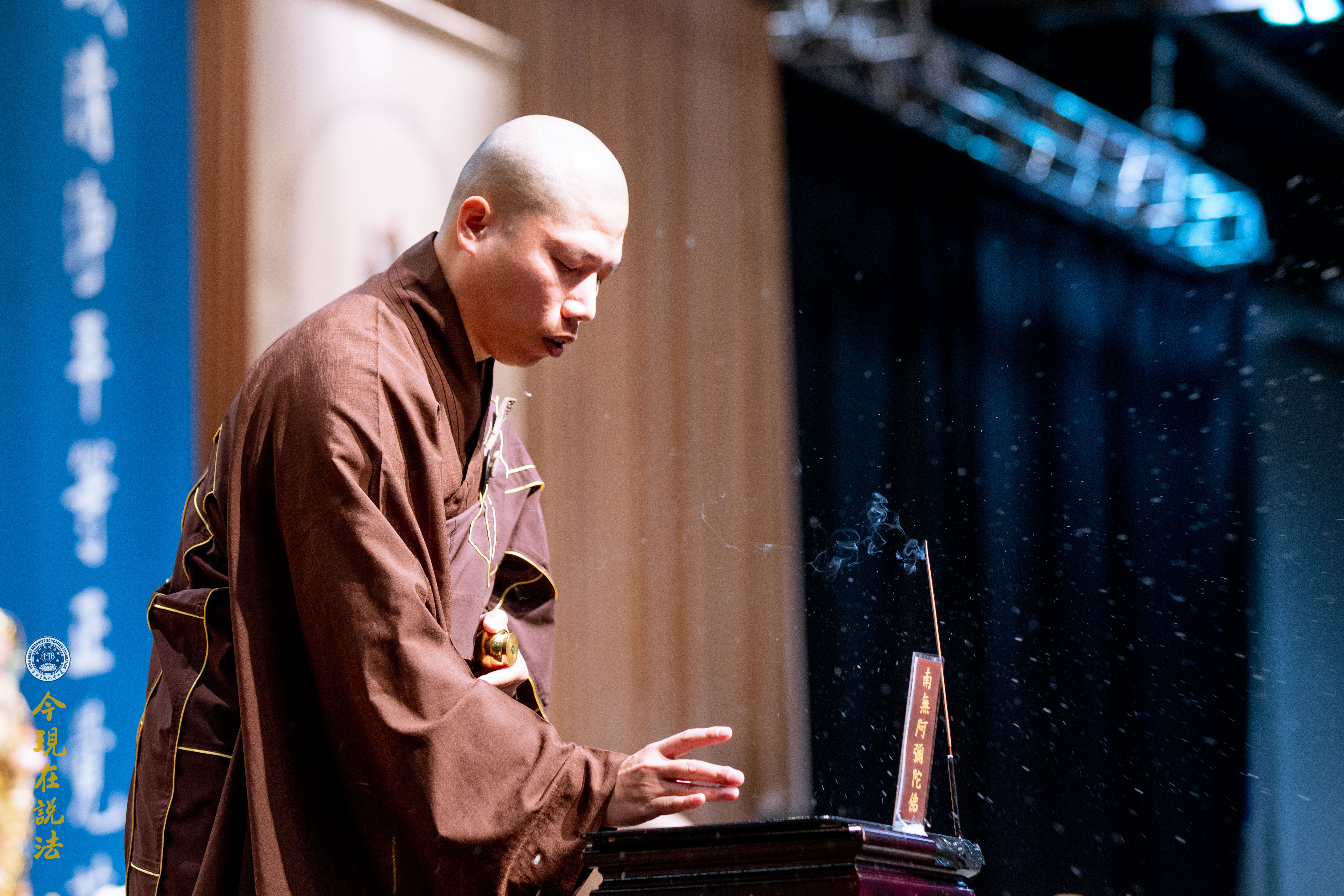 上午十點,淨空老法師蒞臨會場,於佛前上香。