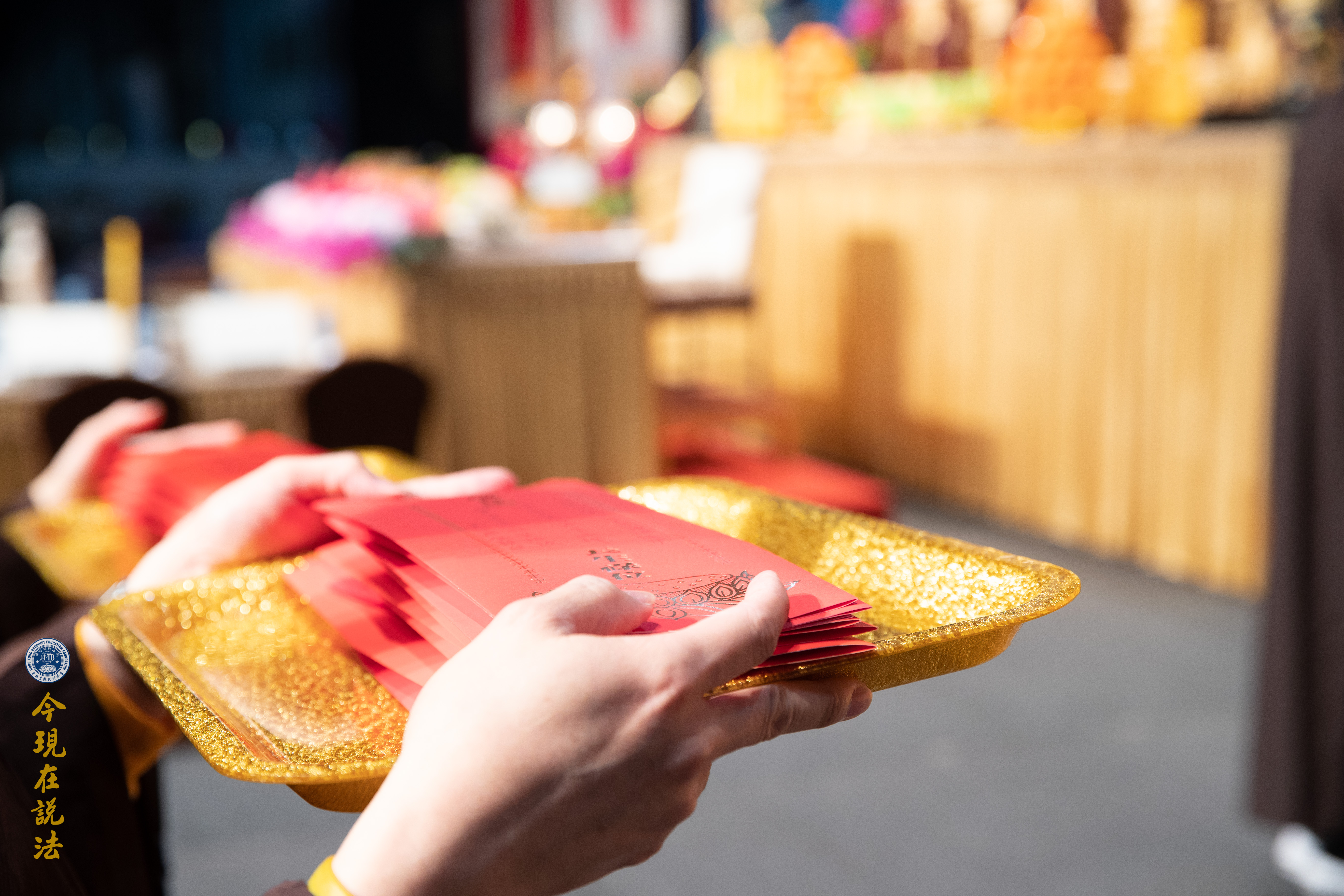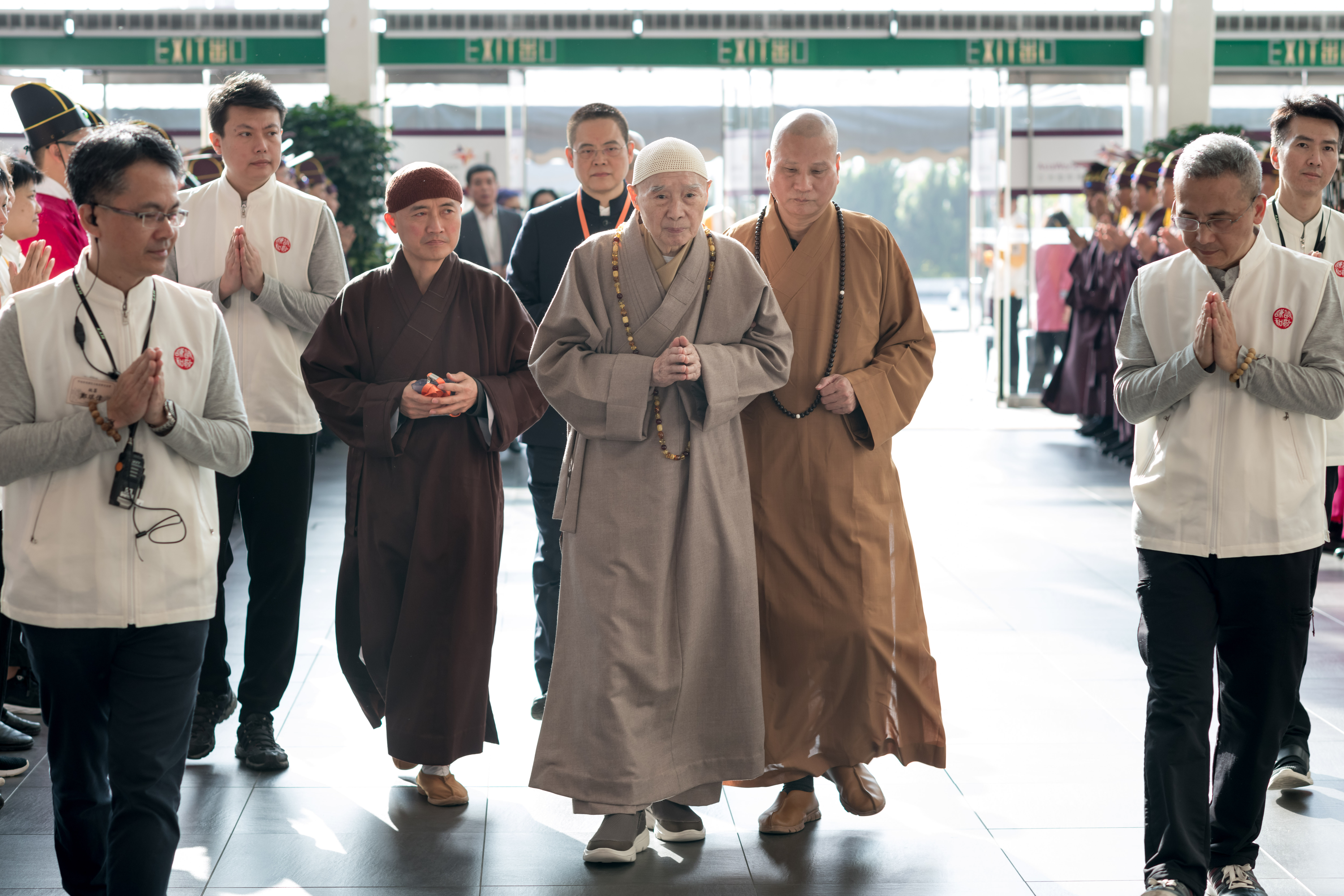 【迴向】主法和尚領眾將誦經、持咒、念佛、行佛事之殊勝功德迴向給神靈,為其洗除業垢,增長善根,令其速生極樂淨土。