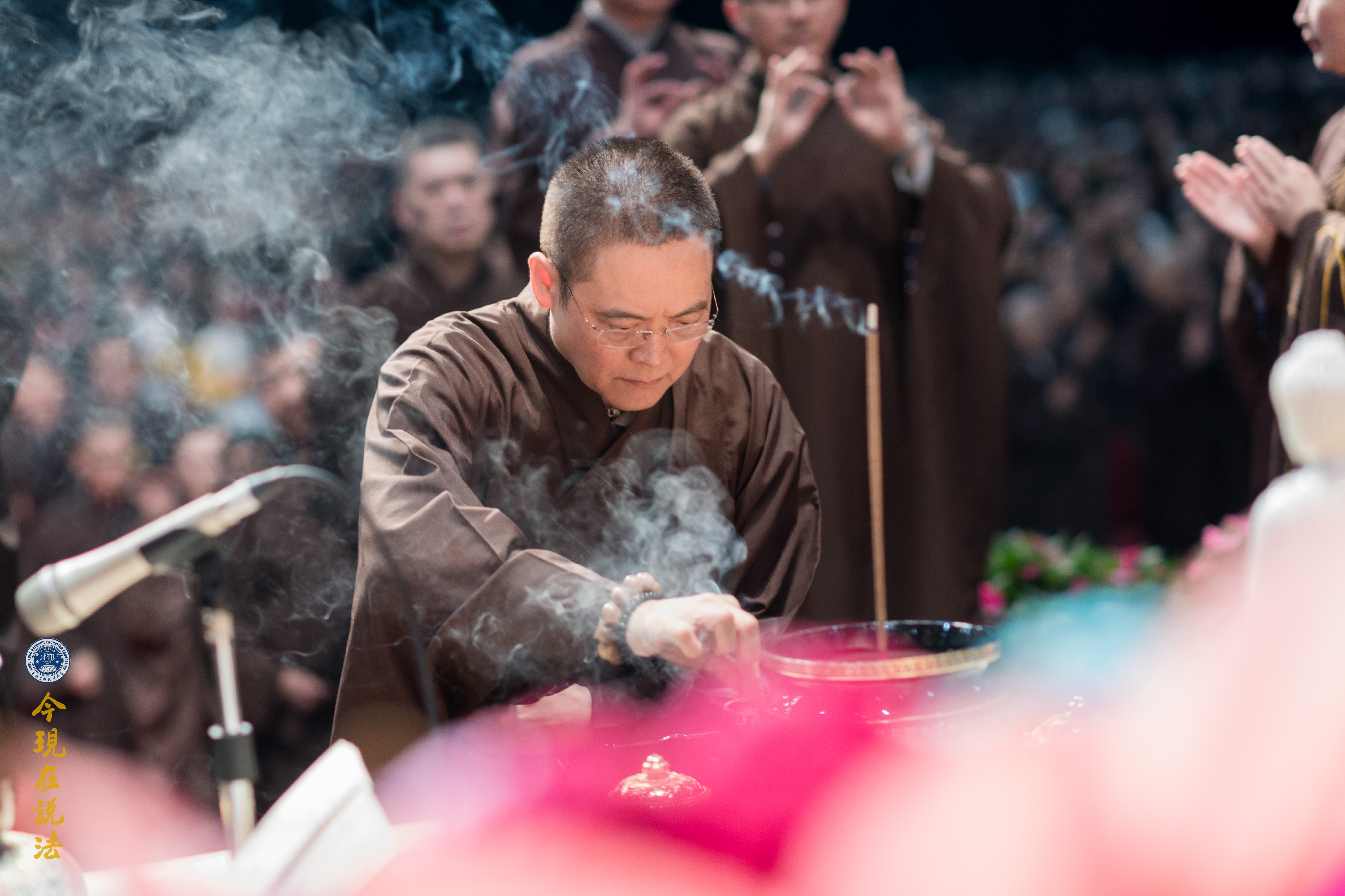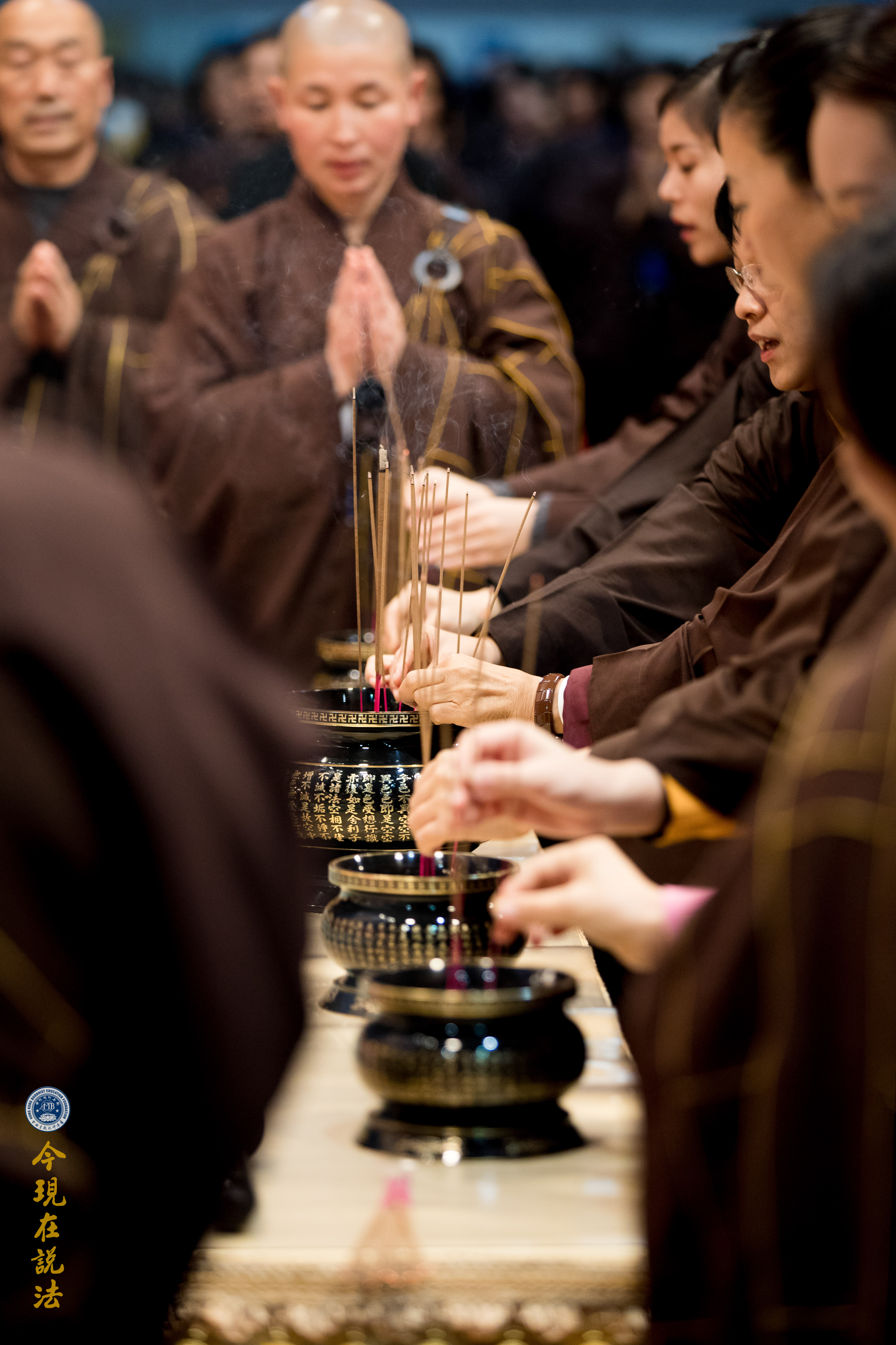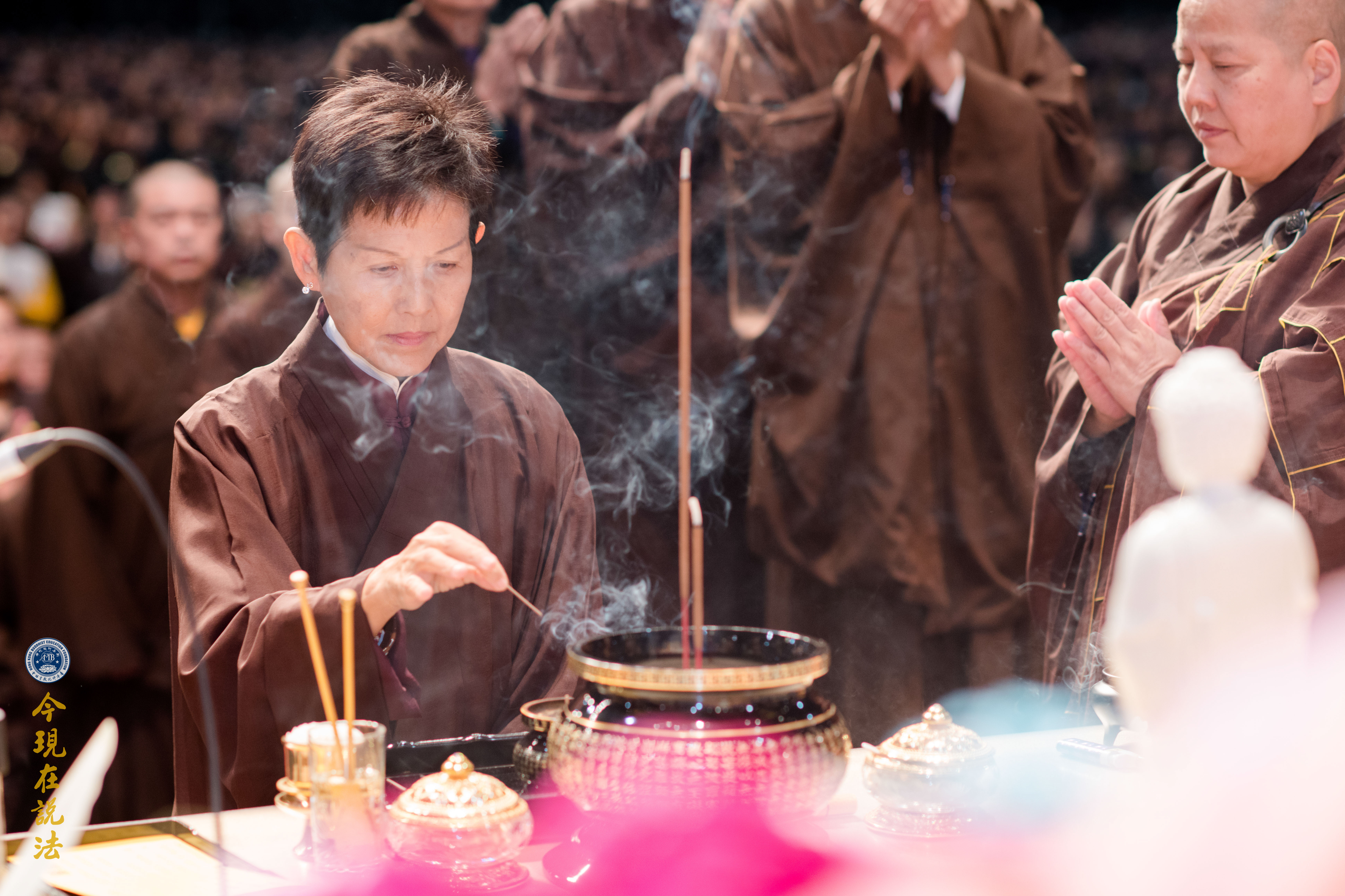 佛門裡「上香」表「勤修戒定慧,息滅貪瞋癡」。圖為懺悔代表虔誠上香。