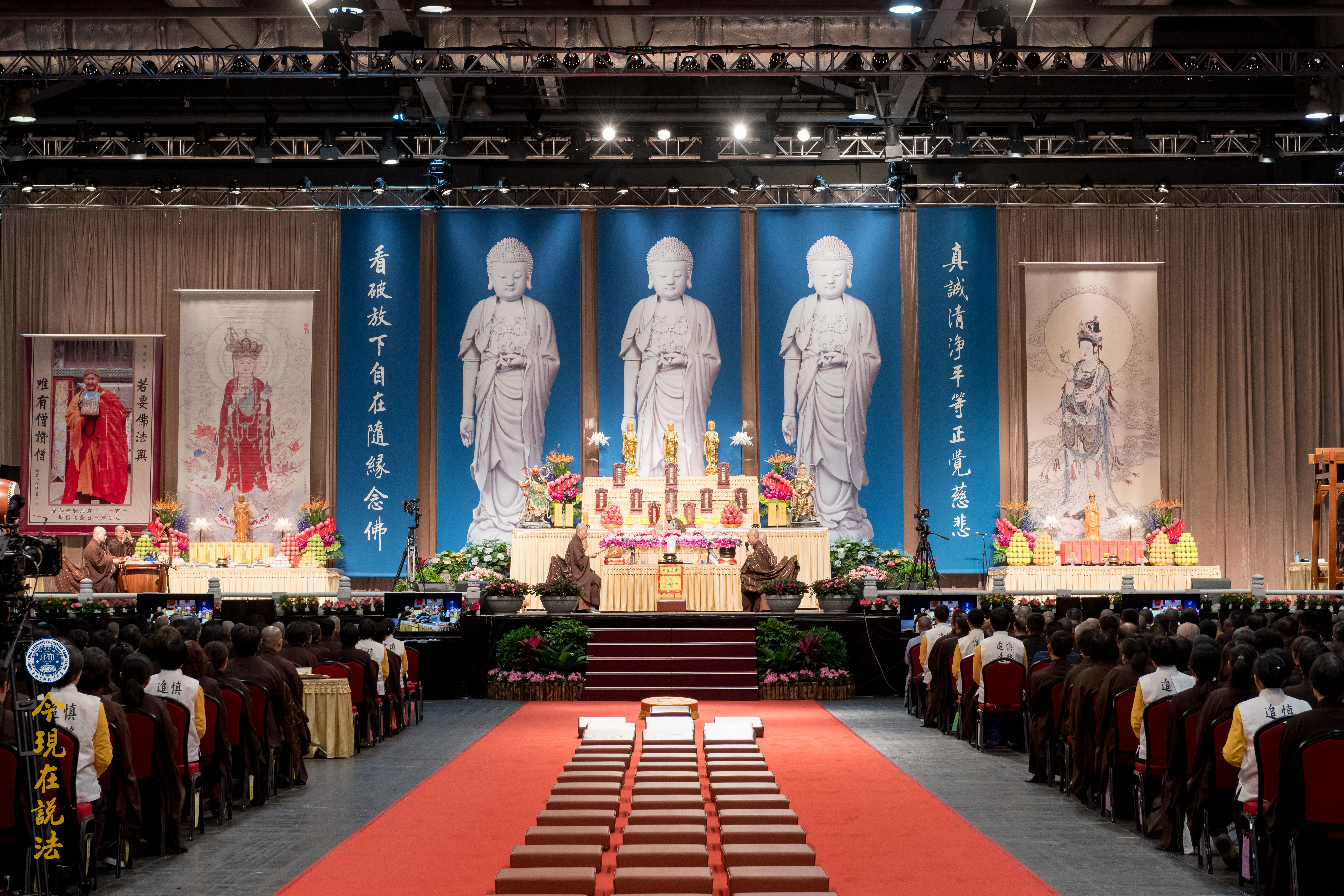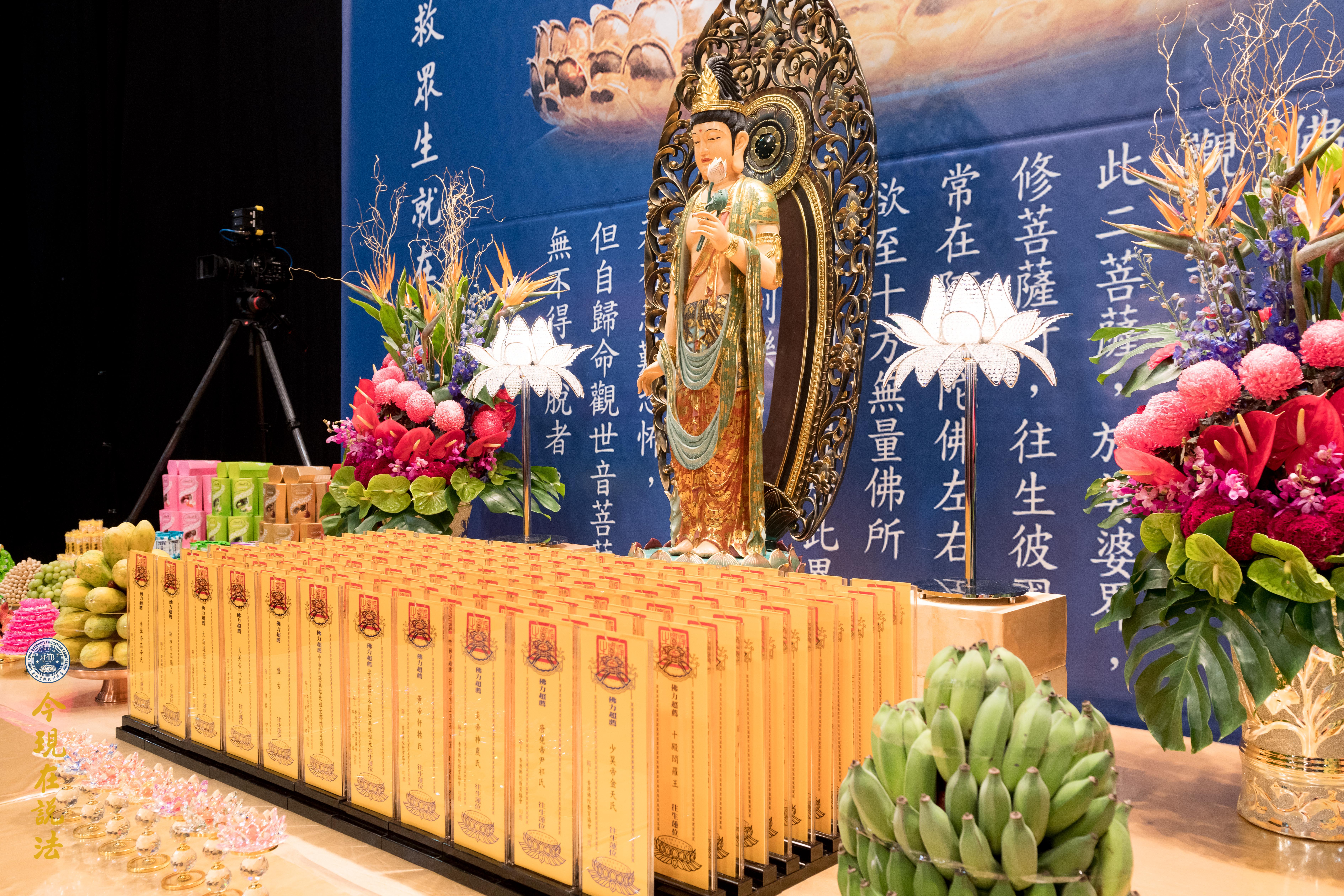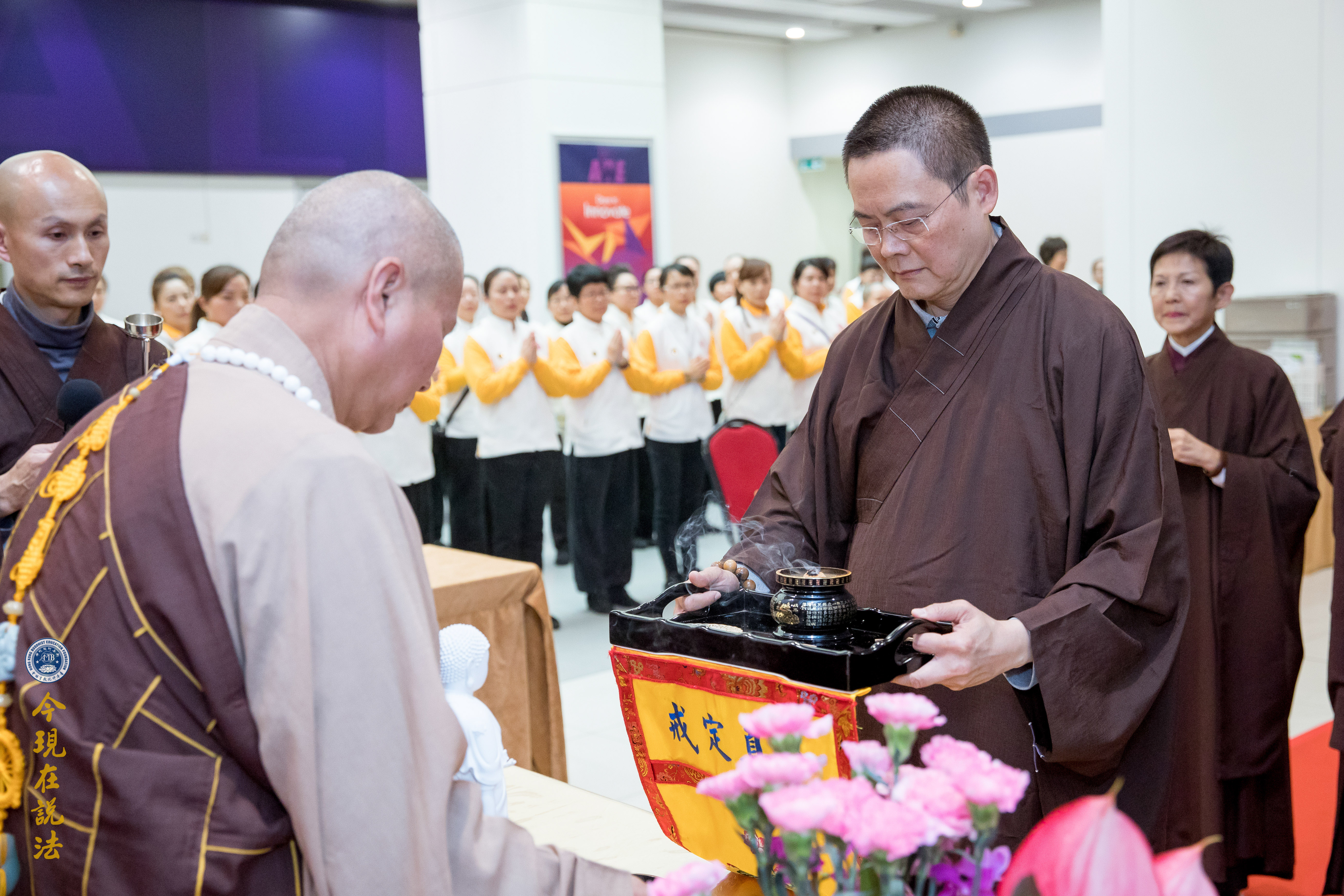 下午一點半繫念法事開始,協會代表恭迎主法和尚與悅眾法師。
