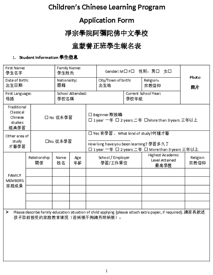 2020年阿彌陀佛中文學校幼兒班招生簡章