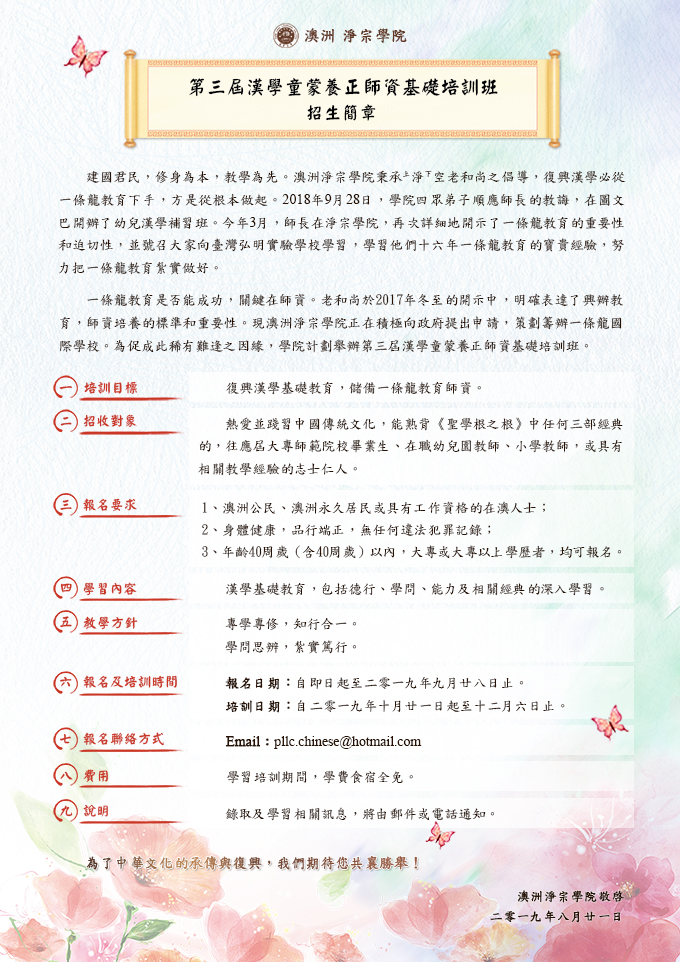 第三屆漢學童蒙養正師資基礎培訓班招生簡章